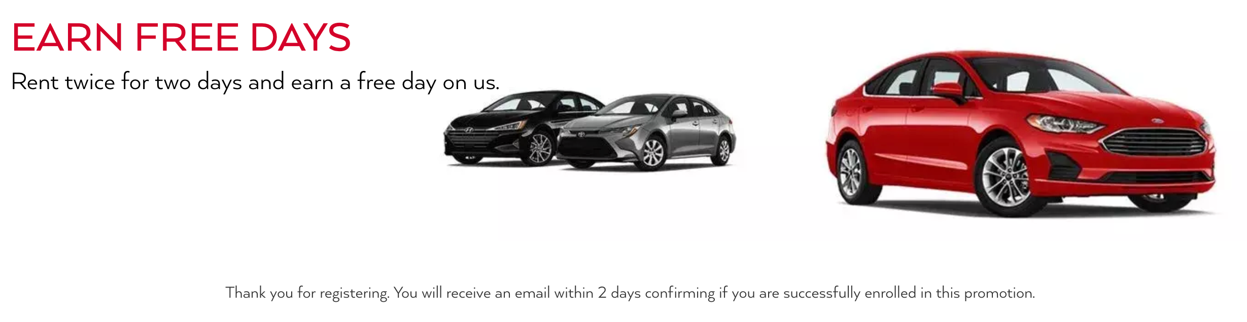 To qualify, you must be a member of the Avis Preferred membership program and register for the promotion here. After that, you will earn one free rental day for every two rental reservations completed within the United States or Canada through February 29, 2020. You'll have until May 24, 2020 to use any Free Day coupons you earn during this time.
