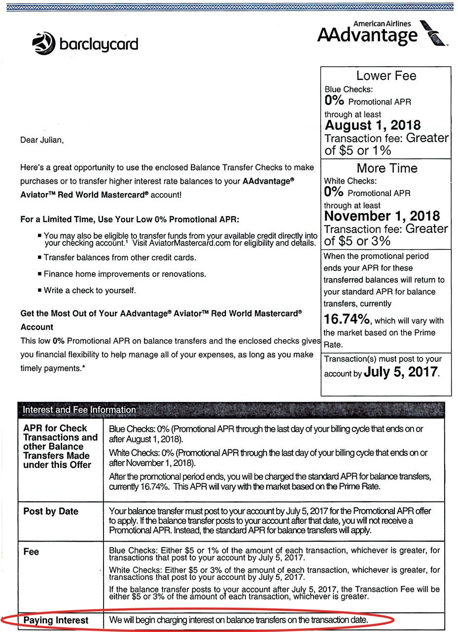 Even if you got offered a low teaser rate with your checks or even 0% to start, the transaction fee for using the check — which can range from 1% to as high as 5% — means it'll cost more to use the checks than it's worth, especially since you're not going to earn any points for the transaction anyway.