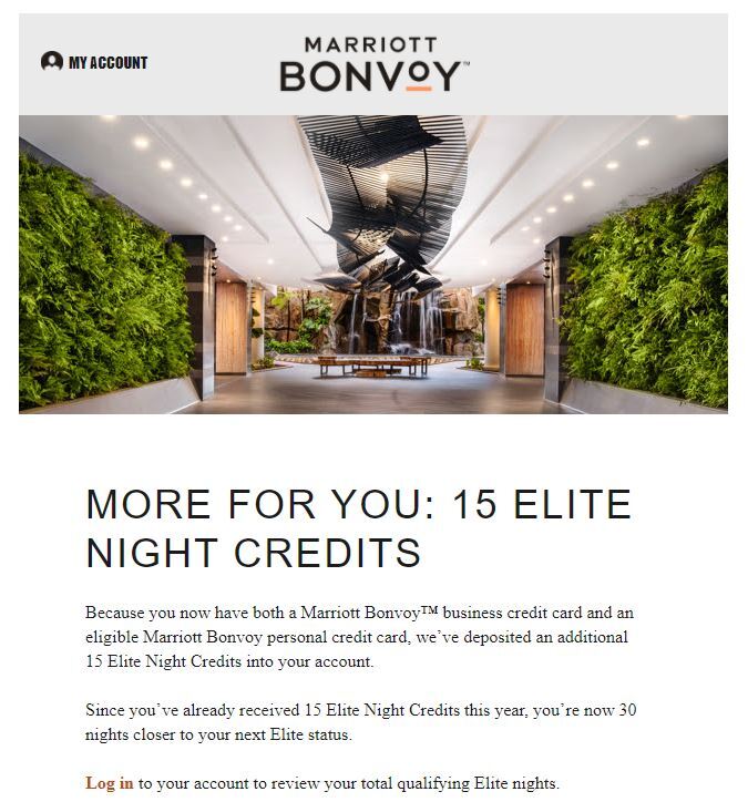 Marriott credit cardholders used to be limited to just 15 elite-qualifying nights. However, at some point in the past year that changed. If you hold a personal and a small business card, you can get 30 nights toward status. I used to have both the personal and business Starwood credit cards. At the start of 2020, I only had the Marriott Bonvoy Brilliant® American Express® Card. But once I learned about getting 30 elite nights, I decided to add the Marriott Bonvoy Business® American Express® Card to my portfolio of 19 credit cards.
