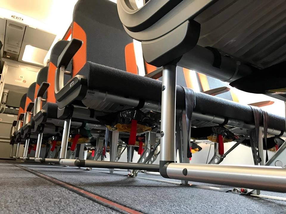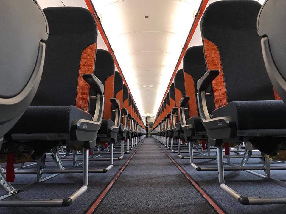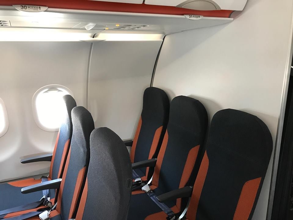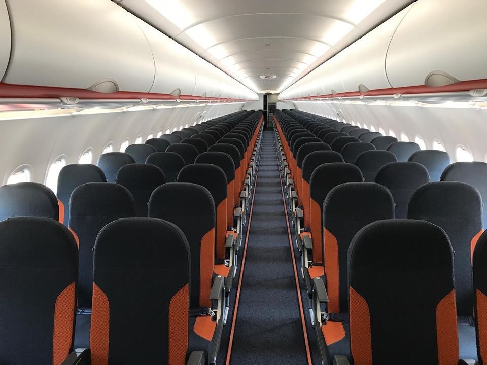 The cabin is configured in typical 3-3 fashion, with 186 seats — there's one extra row here compared to the layout of EasyJet's other A320s.