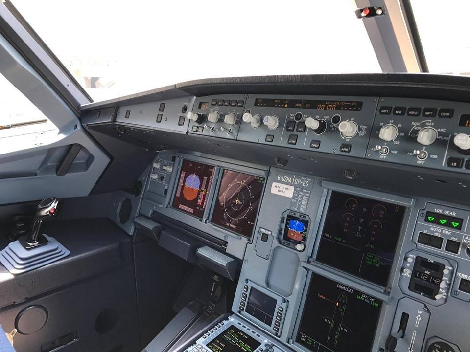The cockpit featured a typical A320 flight deck — the main difference flight crew will notice are the quiet engines, especially on during takeoff.