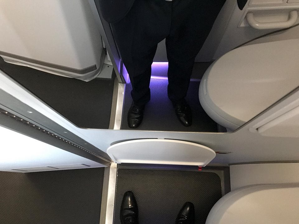 The result? For the airline, it means an extra row of seats were able to be installed where the lavatories would have ordinarily been located. For passengers, it means that the toilets just got a whole lot smaller, especially the one in the center of the galley, where I could barely fit — and I'm not a large guy!