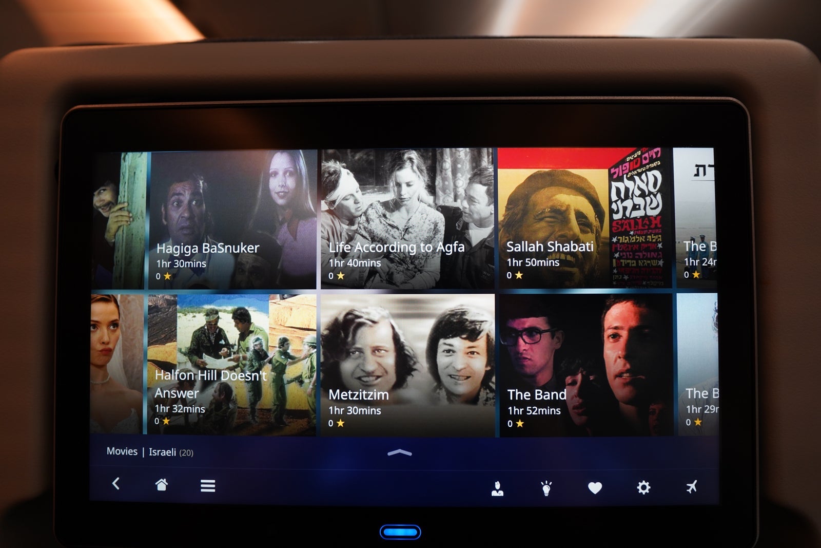 My Israeli seatmate was particularly impressed with the selection of arthouse and cult-classic Israeli films (I may have guiltily picked a Jennifer Garner rom-com instead, but I liked knowing I had the option to watch from a selection of films that would put the Criterion Collection to shame).