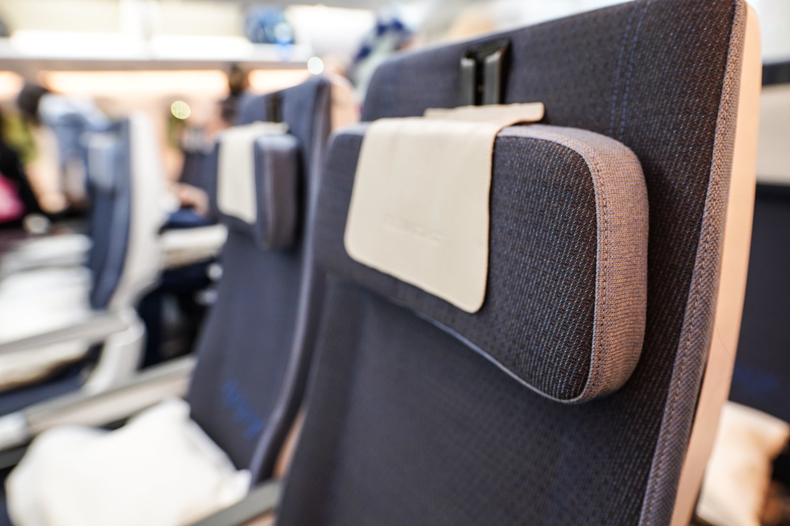 The seats were covered in an attractive blue fabric with contrasting details -- it's the little things in coach that make it feel not so ... coach-y...