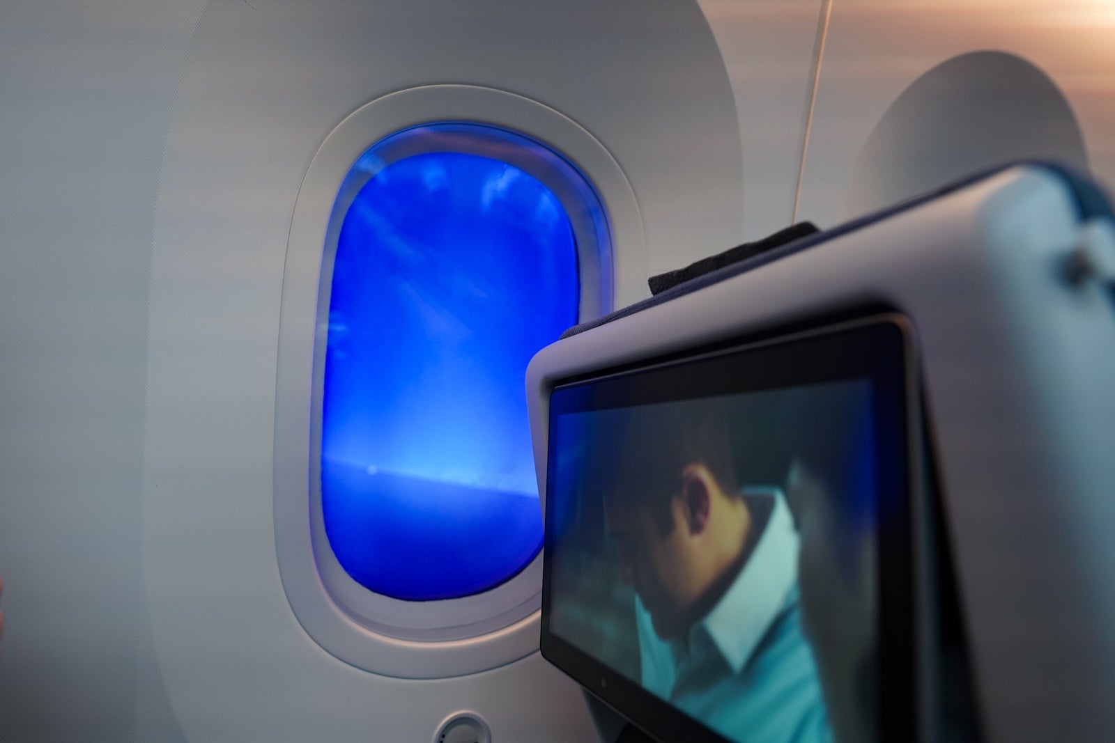 As it was my first time on the Dreamliner, I enjoyed watching the windows gently turn from from black to purple as we flew across the ocean, rather than the usual blasts of light from people yanking shades up and down. The jury is still out on how the mood lighting affected my jet lag.