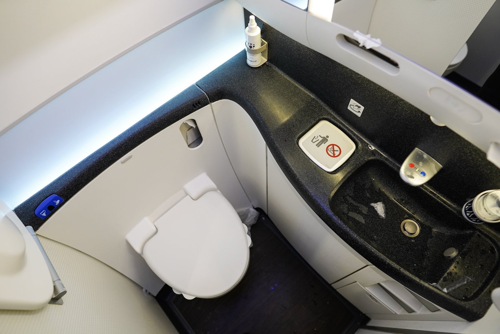 There were four lavatories in the economy cabin, and there was toilet paper over the floor after hour two. Delightful.