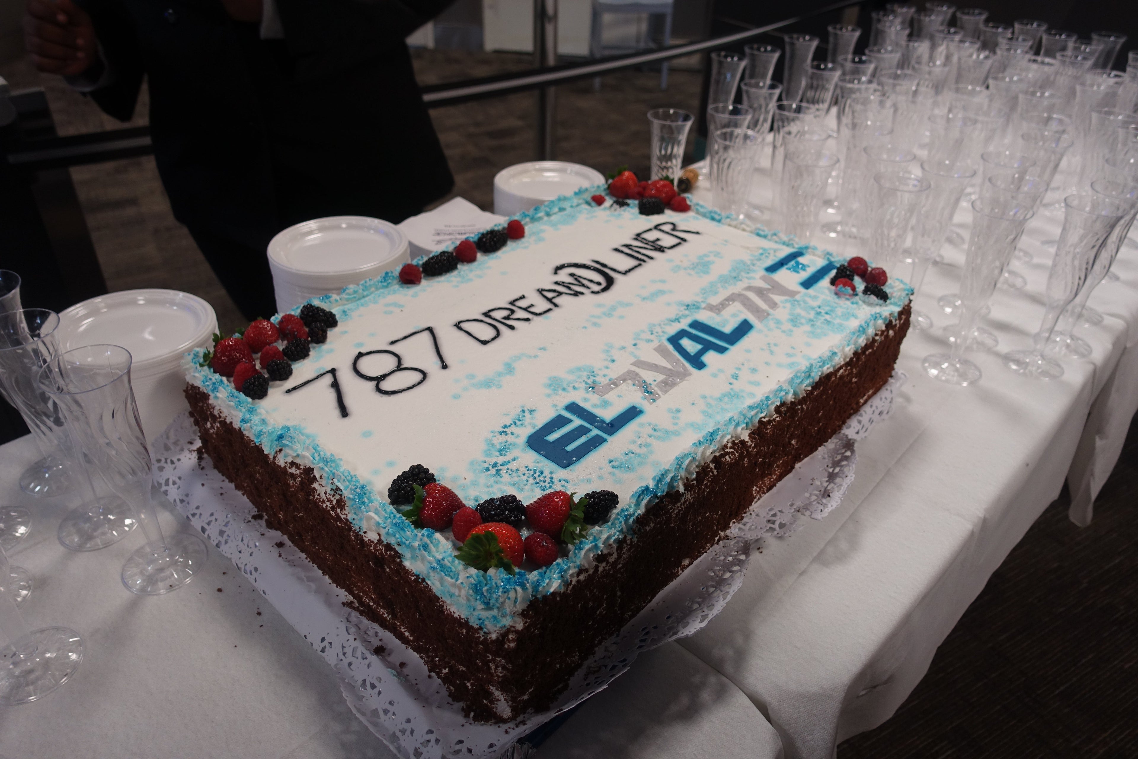 At Gate 62, there was more champagne and even a Dreamliner cake waiting.