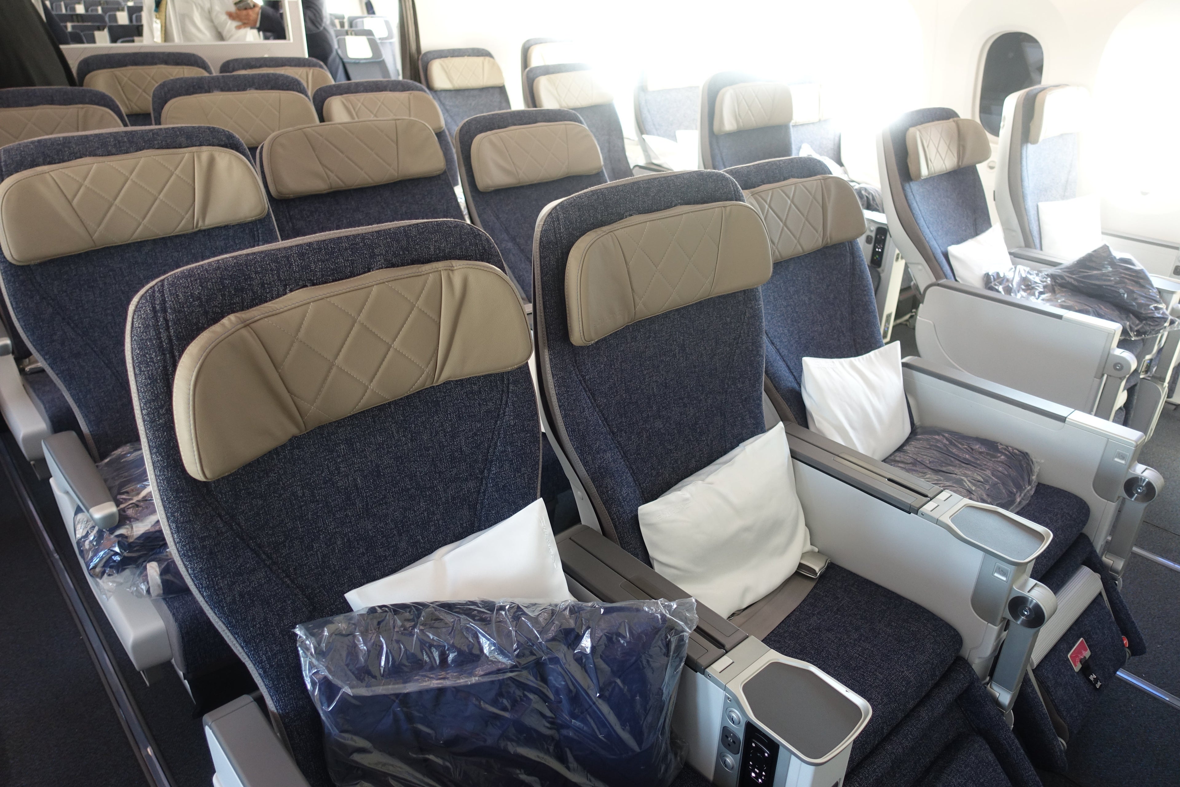 The premium economy cabin features 28 seats arranged in a 2-3-2 configuration. Each has 38 inches of pitch and is 19 inches wide. Again, this is on par with what you'll find in other premium economy products on Dreamliner aircraft.