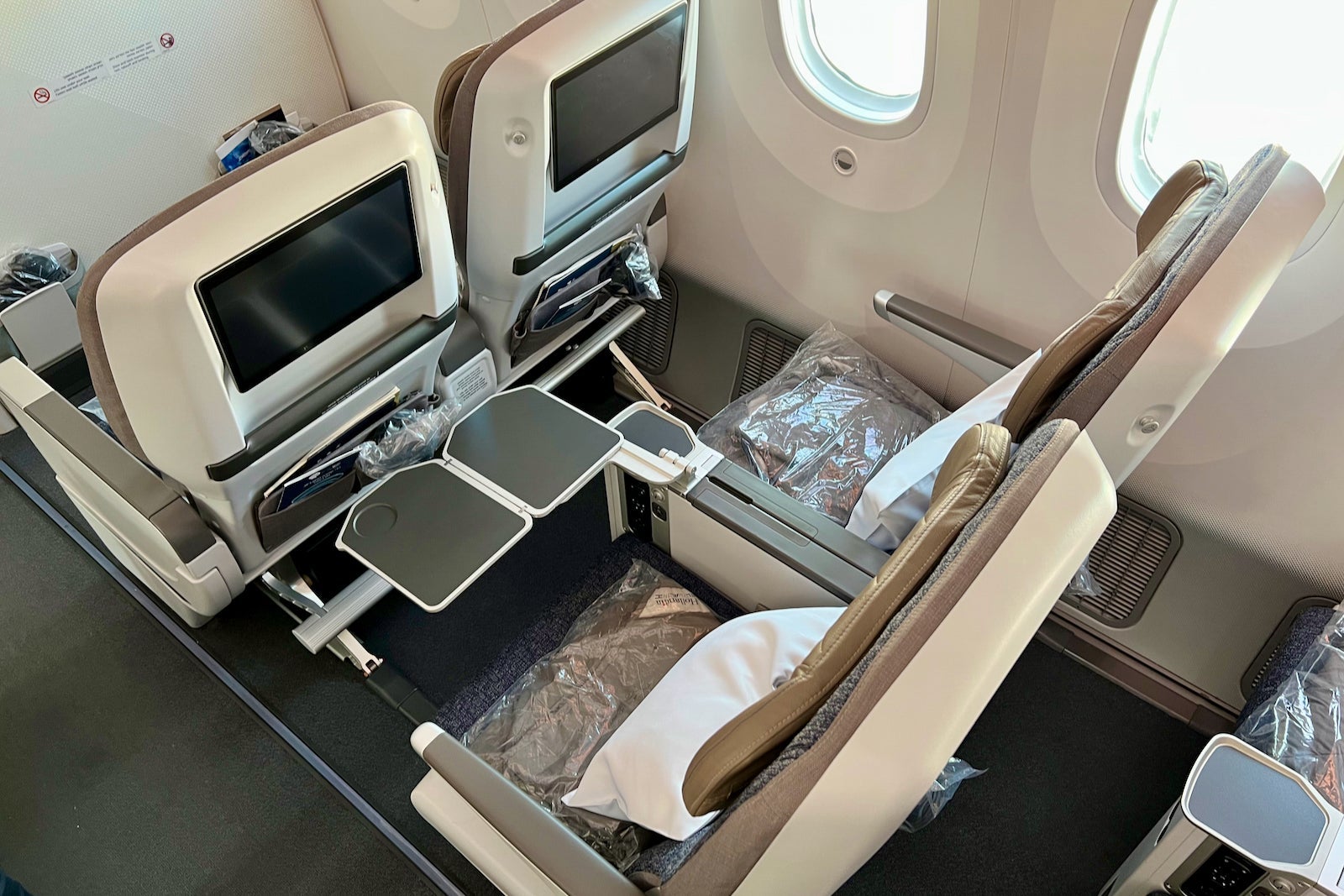 In business, you'll find 20 tastefully designed pods that convert into lie-flat beds with direct aisle access. The oversized, 35-seat premium economy cabin offers a compelling upgrade for a modest buy-up relative to the business-class splurge.