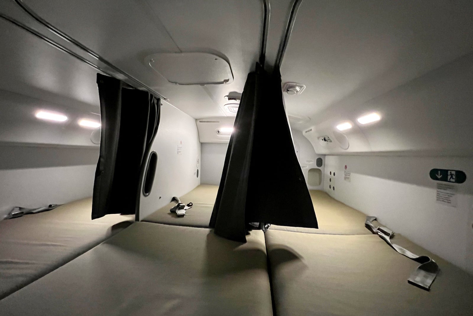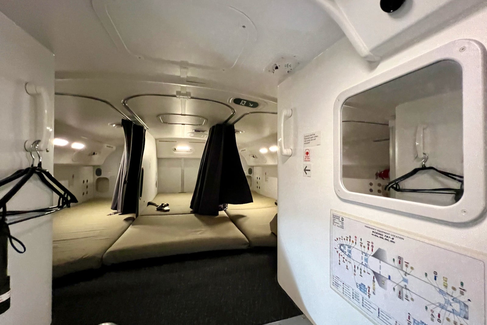 This is where you'll find the crew rest — the place where the flight attendants sleep during their breaks on long-haul routes.