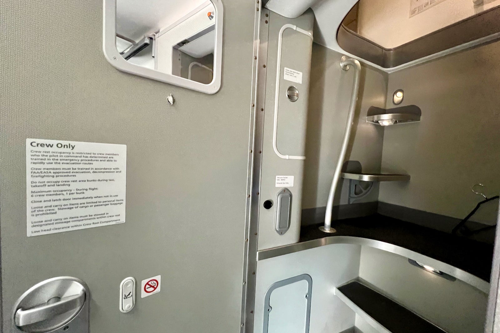 While I'd still prefer a lie-flat biz pod, the crew definitely gets the second-best – and most private — cabin on this plane.
