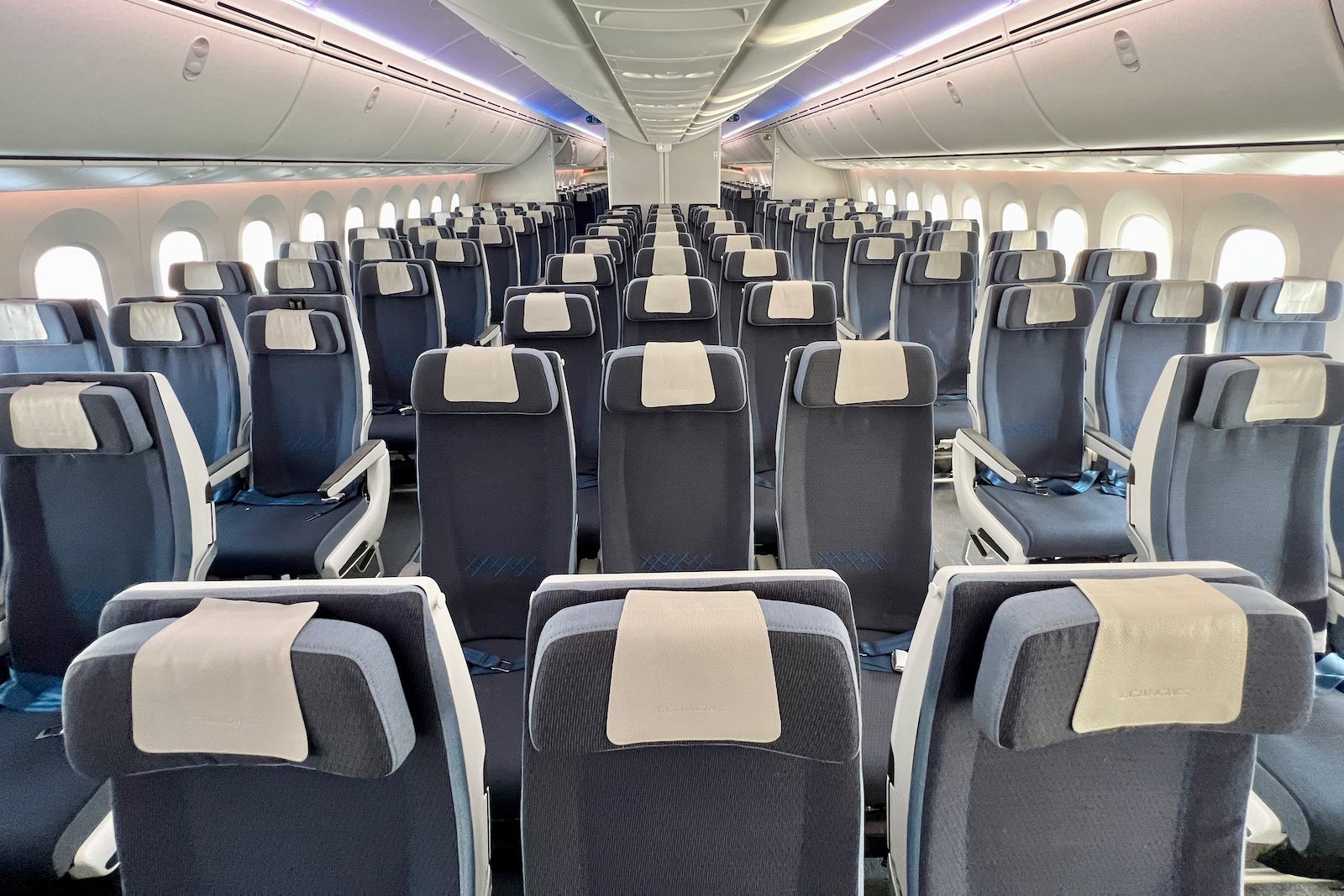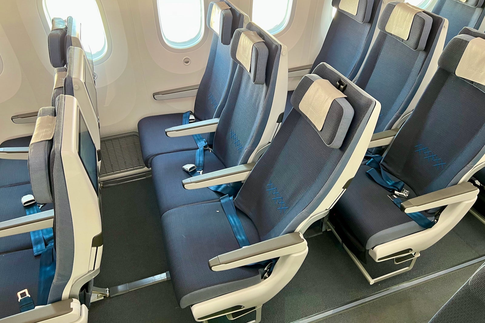 It's definitely a tight squeeze in coach, especially for a long-haul flight, but the 787's large windows and lowered cabin altitude should make for a more comfortable ride than the 747 and 777 that this plane replaces.