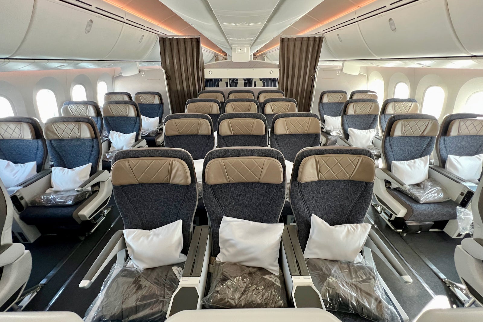 The carrier's 787-8 has a whopping 35 premium economy recliners, compared to 28 and 21 on the same jet operated by American and United, respectively.