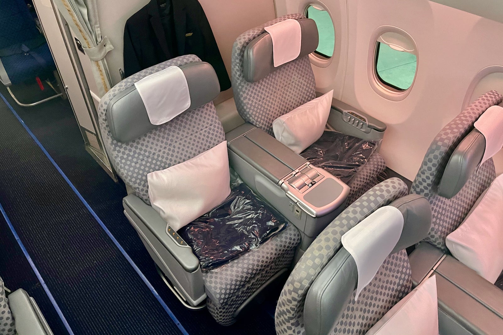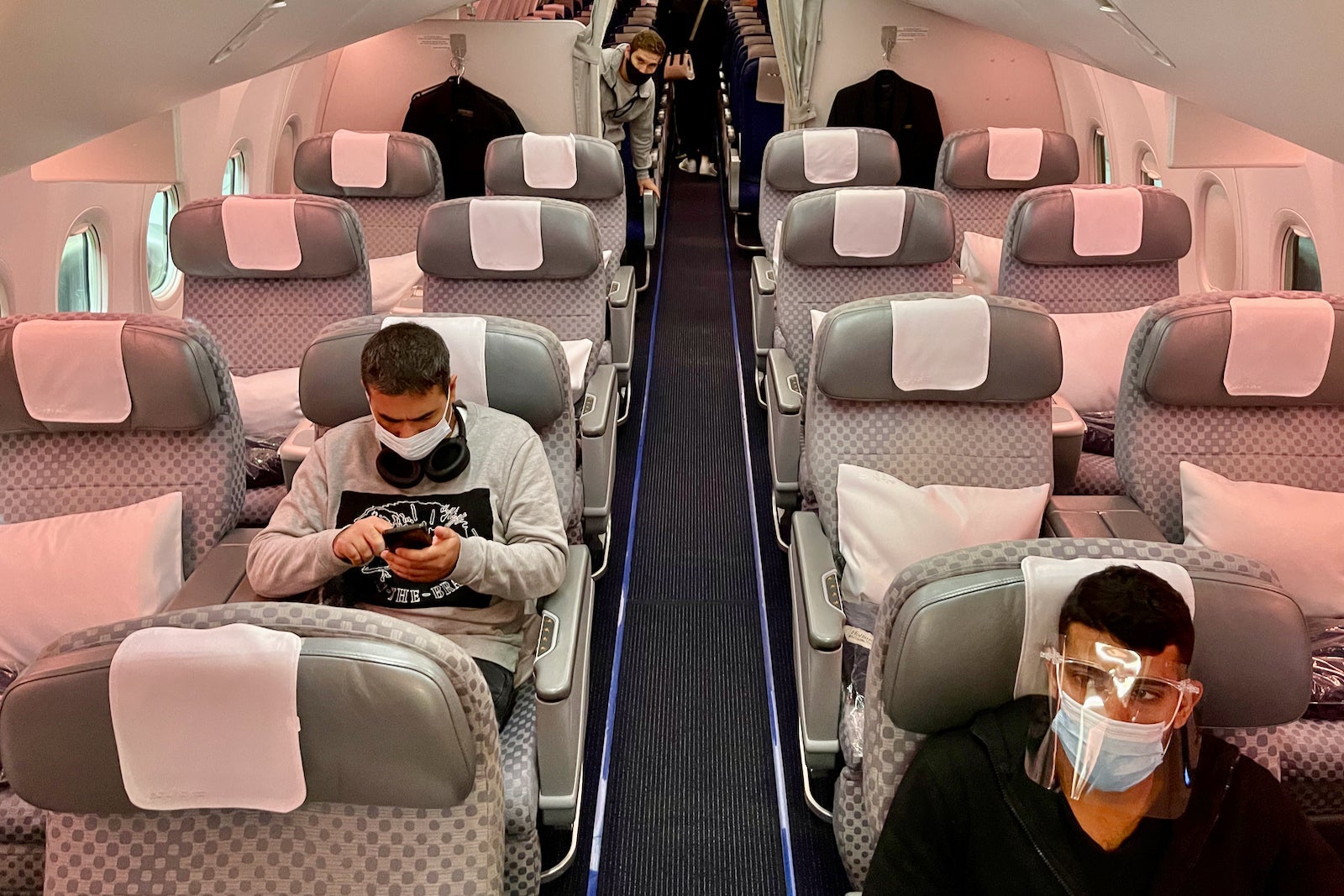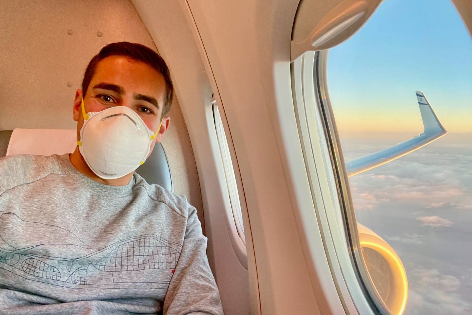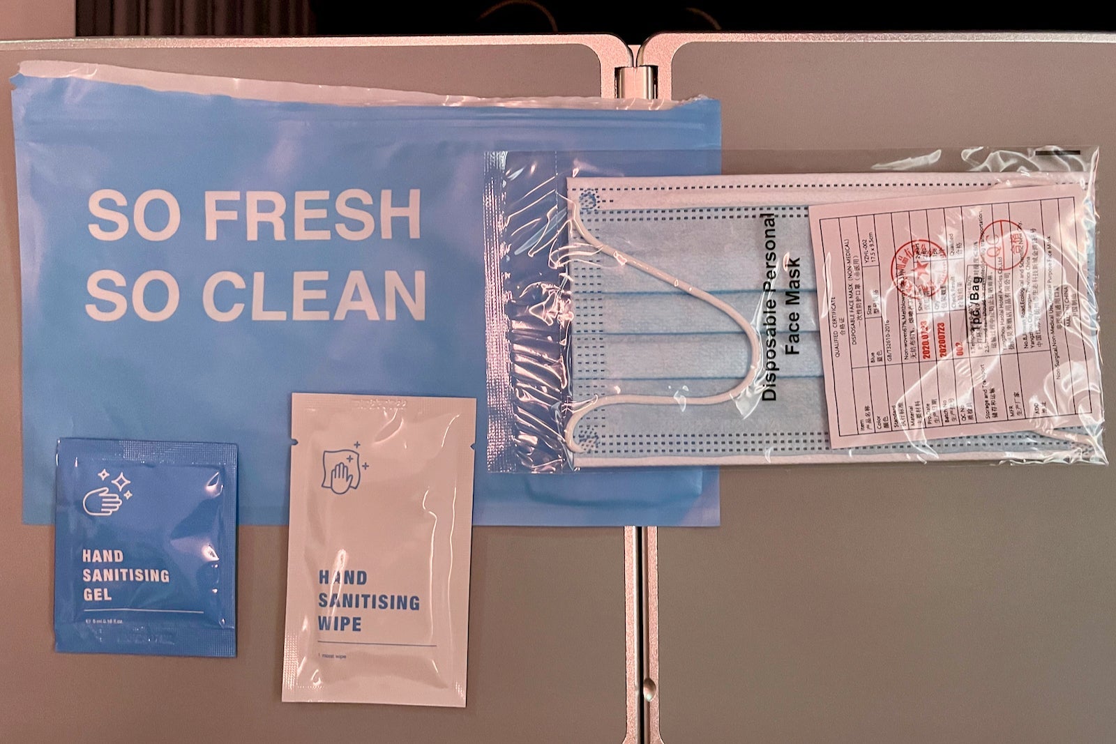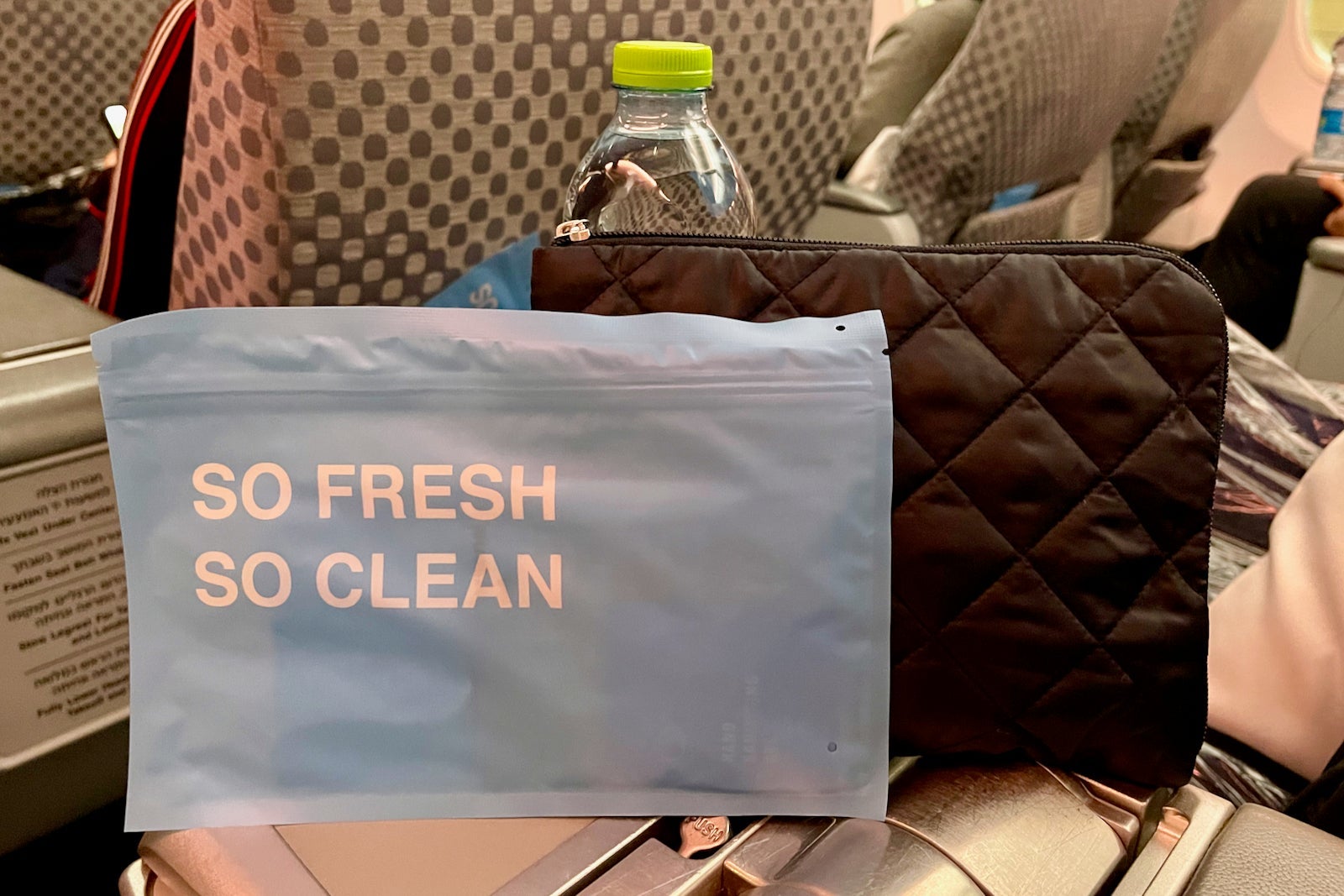 Waiting at my seat was a plush pillow, down blanket and a COVID safety kit, consisting of a disposable surgical mask, hand sanitizer and anti-bacterial wipe. The incredibly friendly flight attendants, Daniella and Eden, then distributed unbranded amenity kits, stocked with socks, earplugs, a toothbrush and an eyeshade, a nice touch for a roughly three-hour flight.
