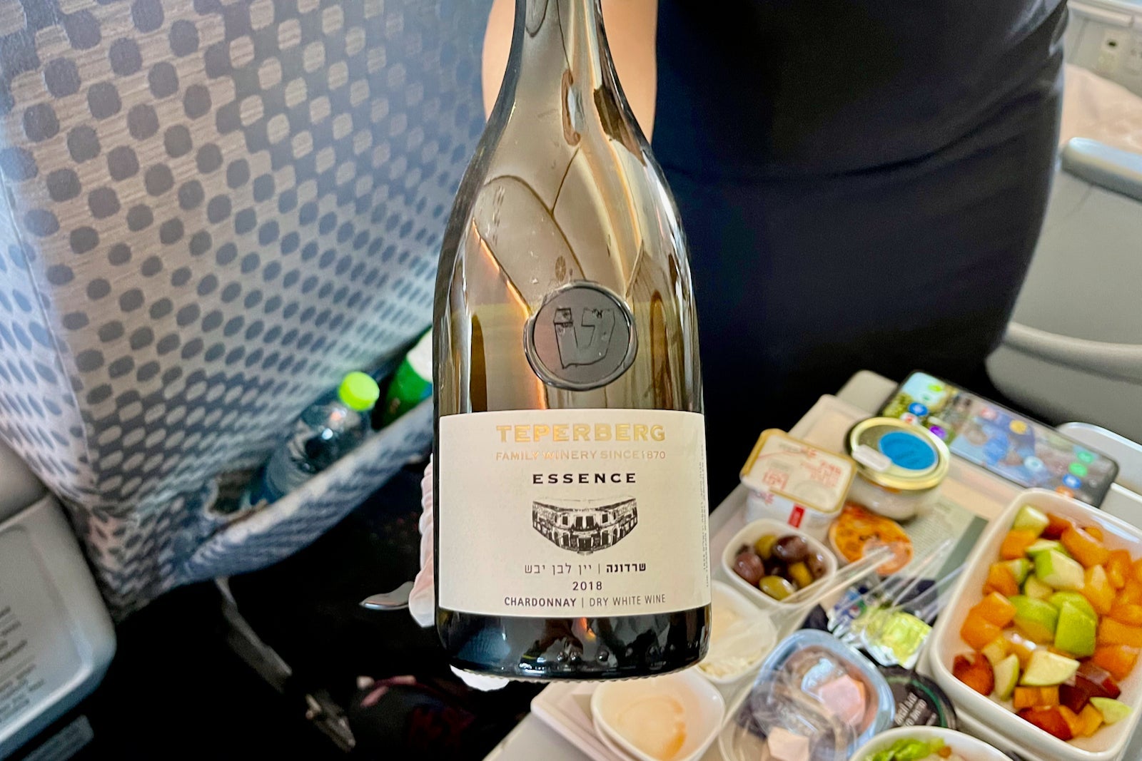 As we crossed into Jordanian airspace, it was time for the breakfast meal service. Drinks were served first, and many passengers toasted to the journey with a glass of Israeli wine. None, however, went for the "hard stuff" on offer, including whisky, gin and vodka.