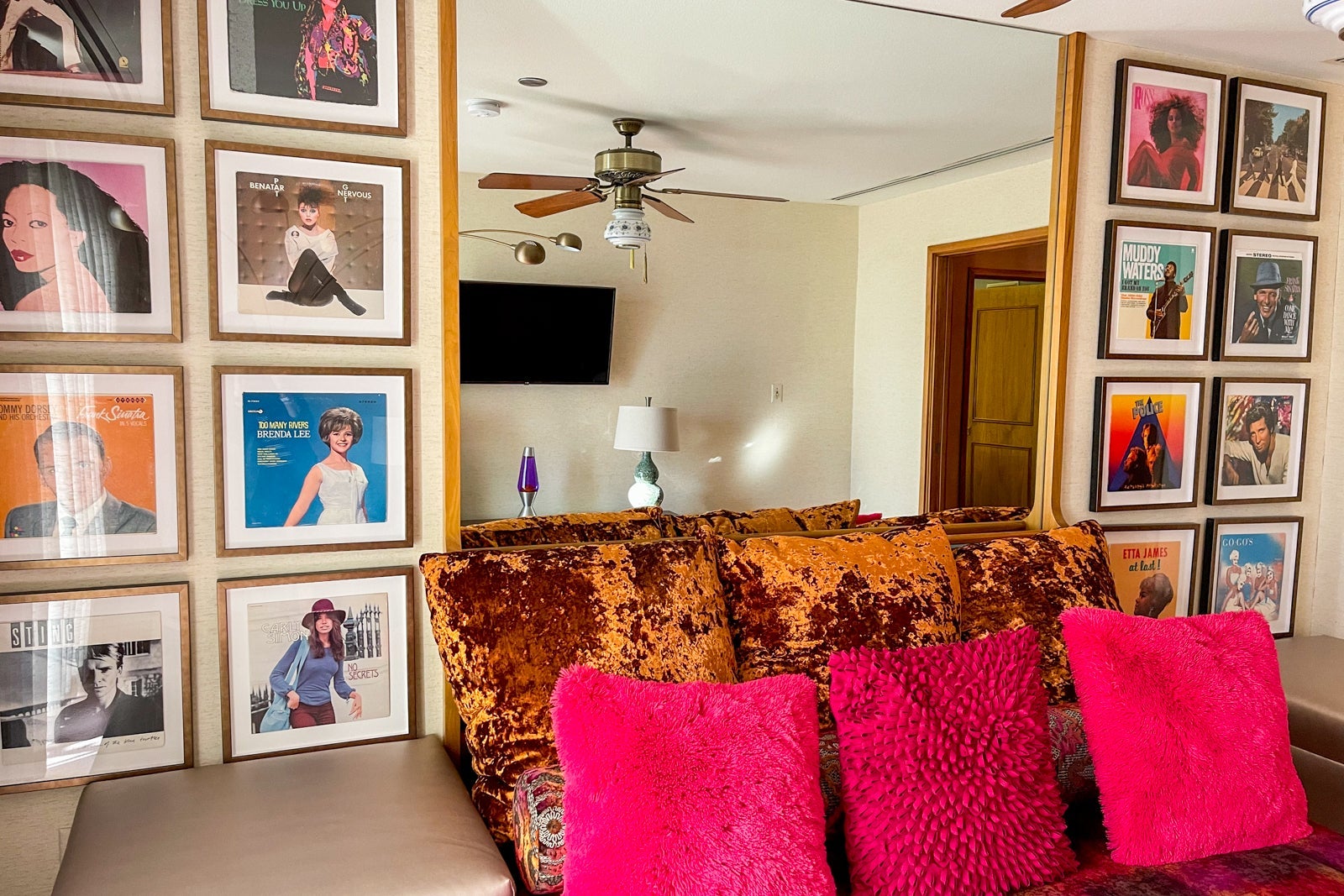 Connecting the rooms is the so-called "romper" room that features colorful artwork, swag pillows and a balcony. It's an ideal place to relax and entertain guests.