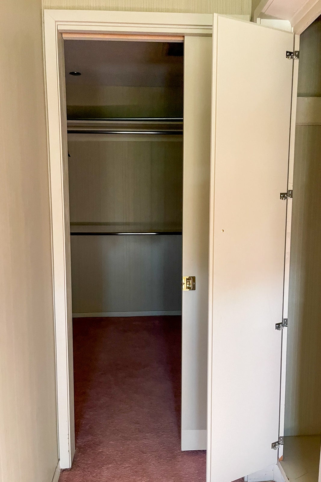 Bertie's bedroom features two large queen beds and a walk-in closet in the adjacent hallway.