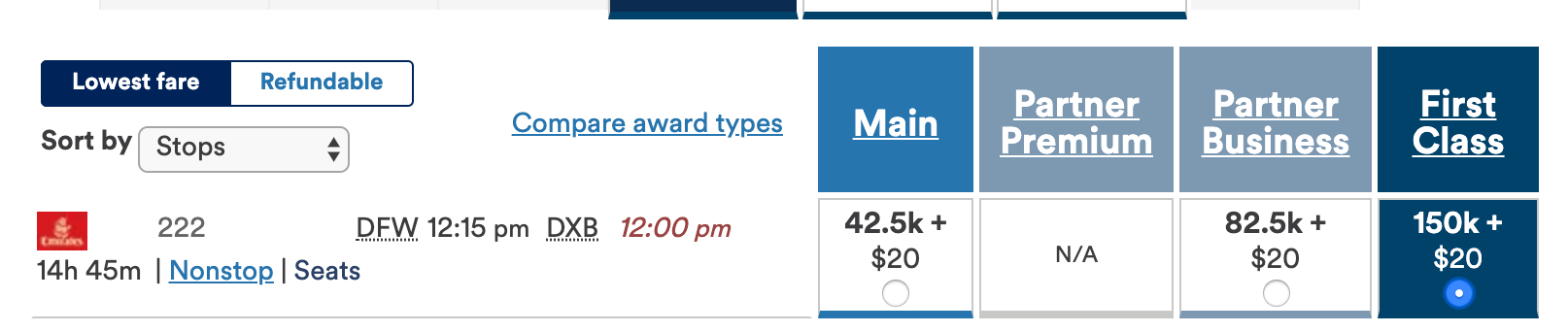 Emirates has generally been stingy with award space for these new cabins, which makes sense as there are only six first class seats as opposed to eight on the older 777 configuration, or 14 on the A380. However, Emirates has been releasing close-in award space within 24-48 hours of departure. If you hurry, it's even possible to book a seat on Monday's flight from Dallas/Fort Worth to Dubai featuring the new suites.