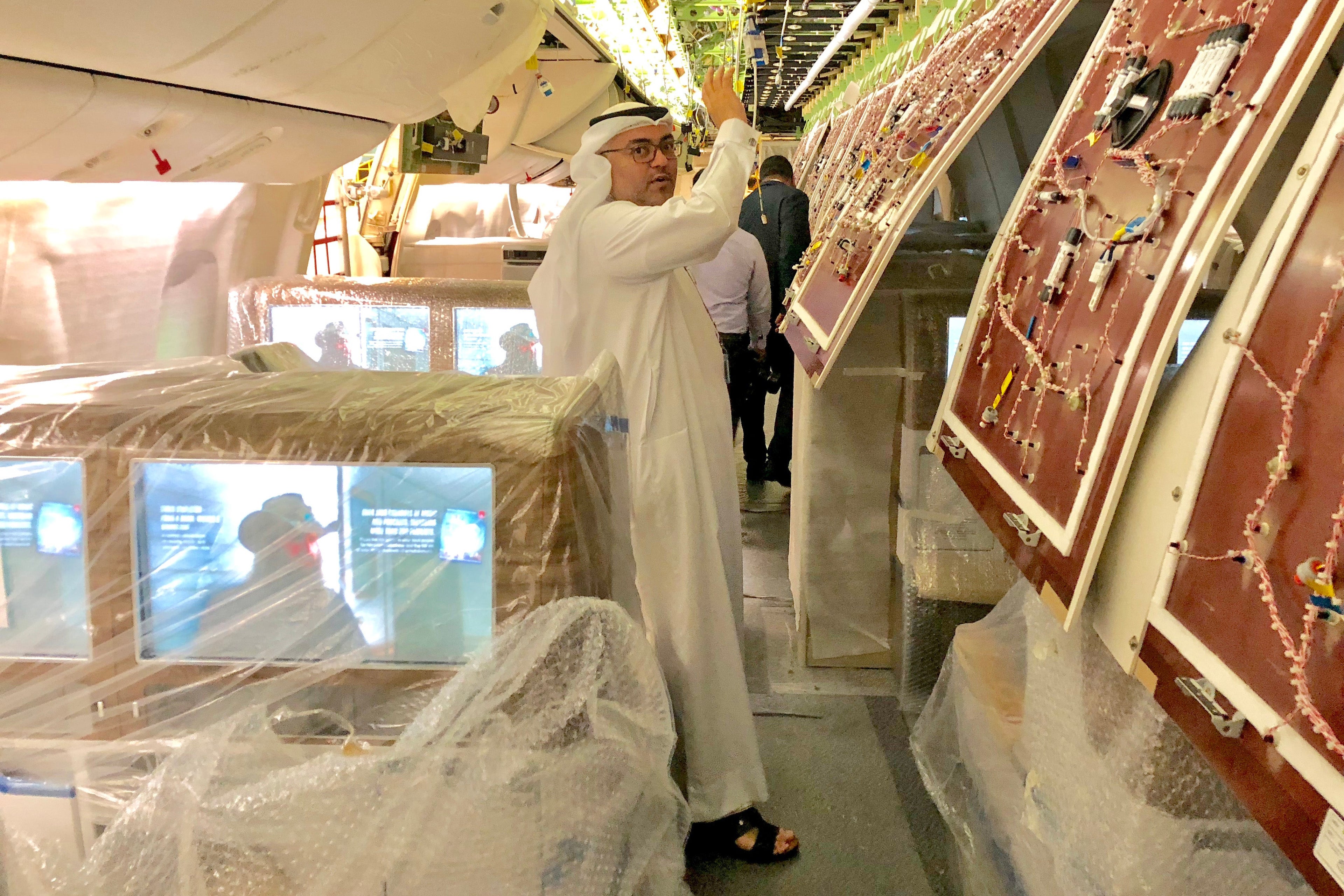 Emirates Engineering completely stripped the aircraft, removing everything but the cockpit and some elements of the crew rest.