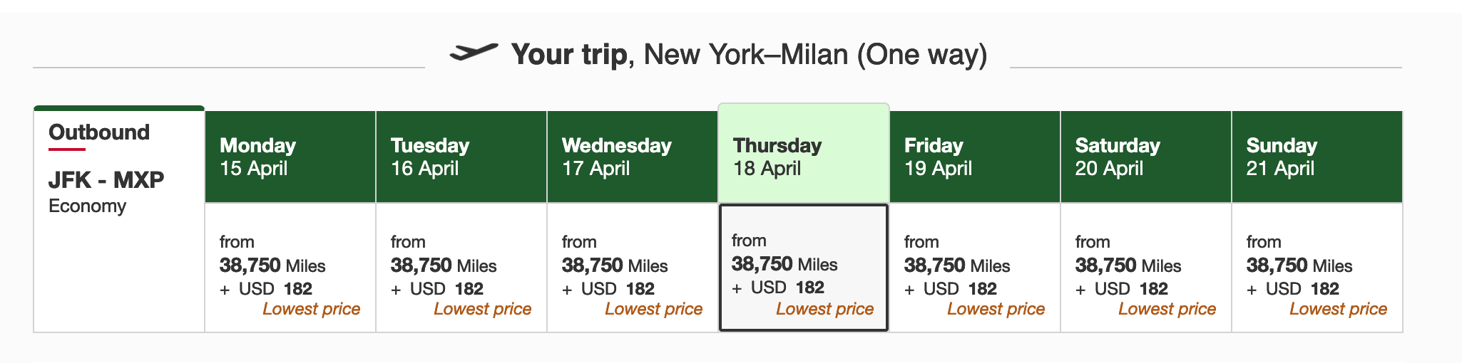 You have a few different options for booking these flights using points and miles, though there are some obvious winners and losers. Given that several of these loyalty programs use distance-based award charts that have different prices for JFK-MXP and EWR-ATH, I'm going to split this up into two sections. We'll start with the more popular New York to Milan route. Not only is it a shorter distance (and therefore cheaper to book with both JAL Mileage Bank and Qantas Frequent Flyer), but this is the route that features Emirates' flagship A380, complete with onboard bar and shower.