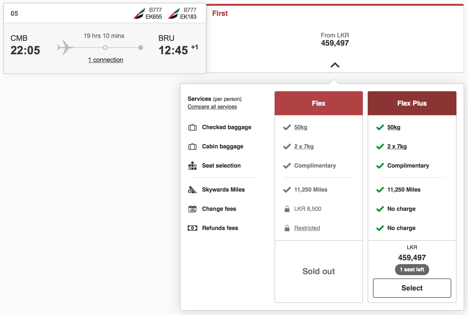 So that's why I traveled all the way to Sri Lanka, for one night, followed by a flight in Emirates' "old" first-class suite to Dubai and then finally the main event. If I were to book just the segment I need, Emirates Flight 183, it would run me $5,500 one-way.