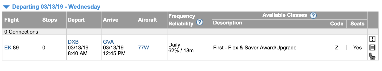 Emirates began by installing this product only on newly-delivered 777 aircraft and has been slow to roll it out to the rest of the fleet. You'll only find this revolutionary seat on a limited number of routes, from Dubai (DXB) to cities such as Brussels (BRU), Geneva (GVA) and Vienna (VIE). While Emirates first class awards have gotten much harder to book in recent years, for a long time Emirates was blocking all first class award space on planes featuring this new cabin.