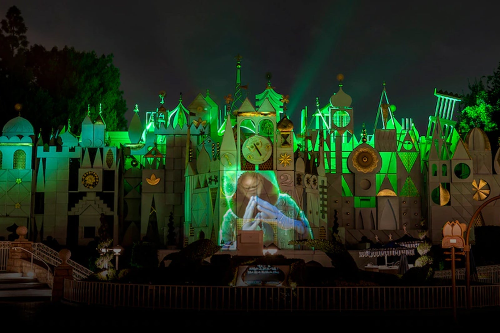 Several times a night, the wall of Disney's famous "It's a Small World" attraction will be illuminated with a "brief visual montage," according to an announcement from Disney Parks. Set to the chorus of Lin-Manuel Miranda's hit song, "We Don't Talk About Bruno," the enchanting series of projection and lighting effects will capture the visually stunning spectacle of the movie.