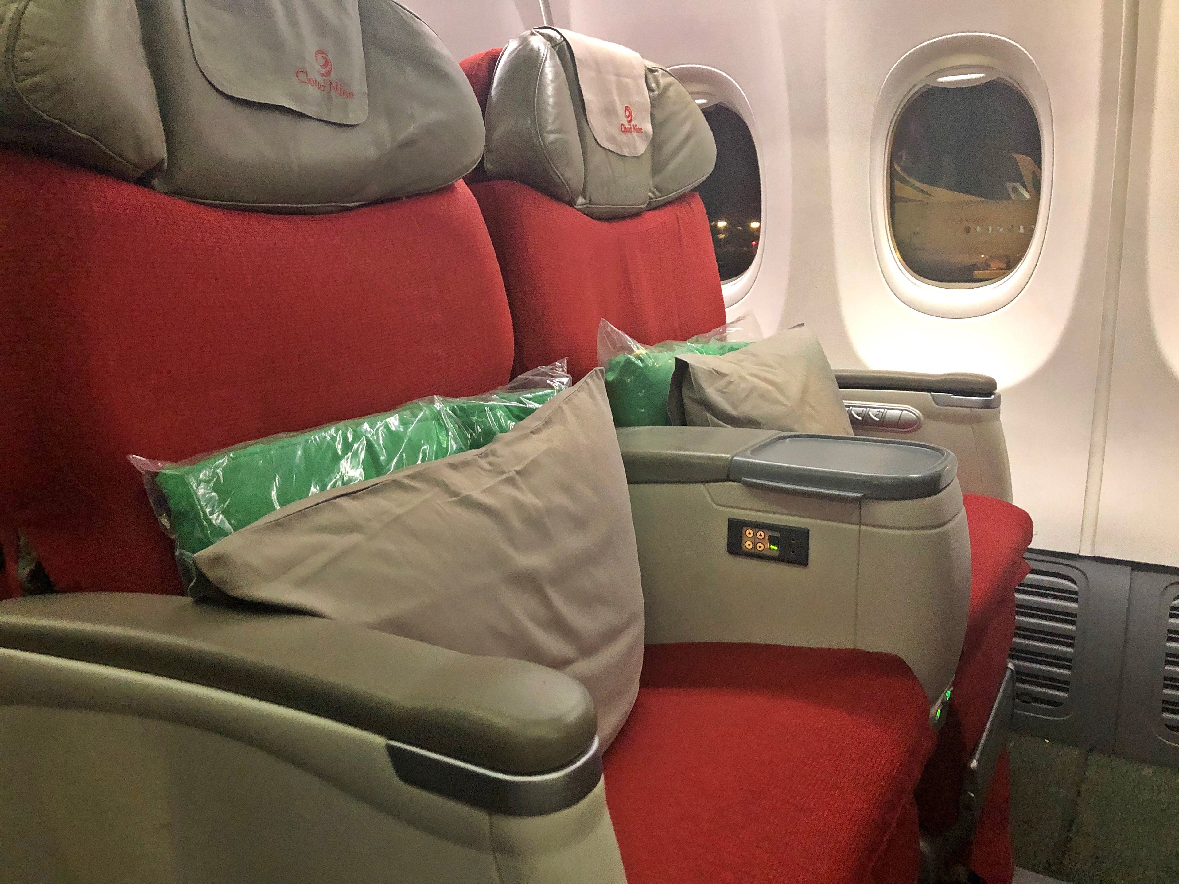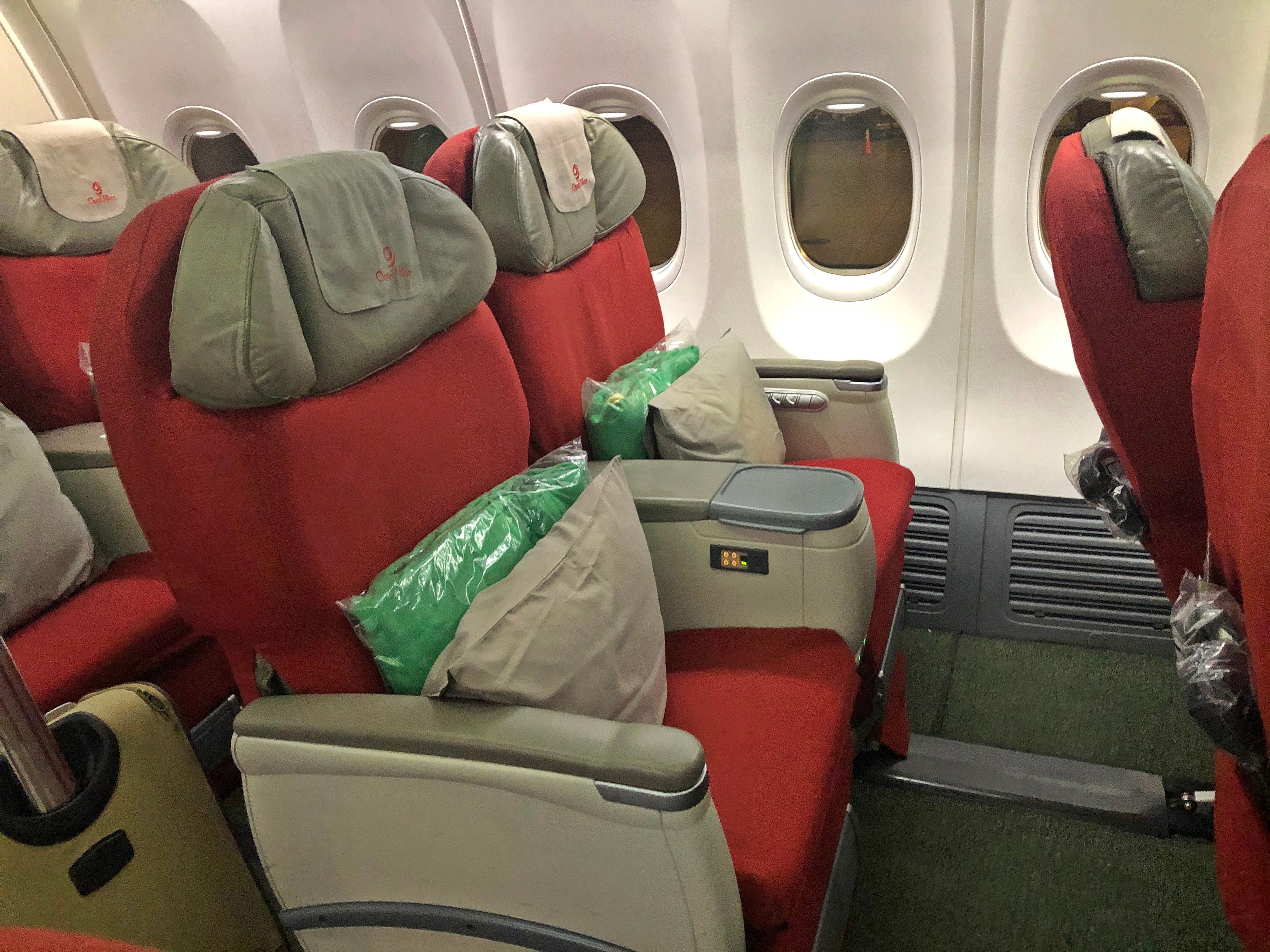 I boarded anyway (there wasn't much I could do) to find a tired-looking business-class section with dated recliner seats.