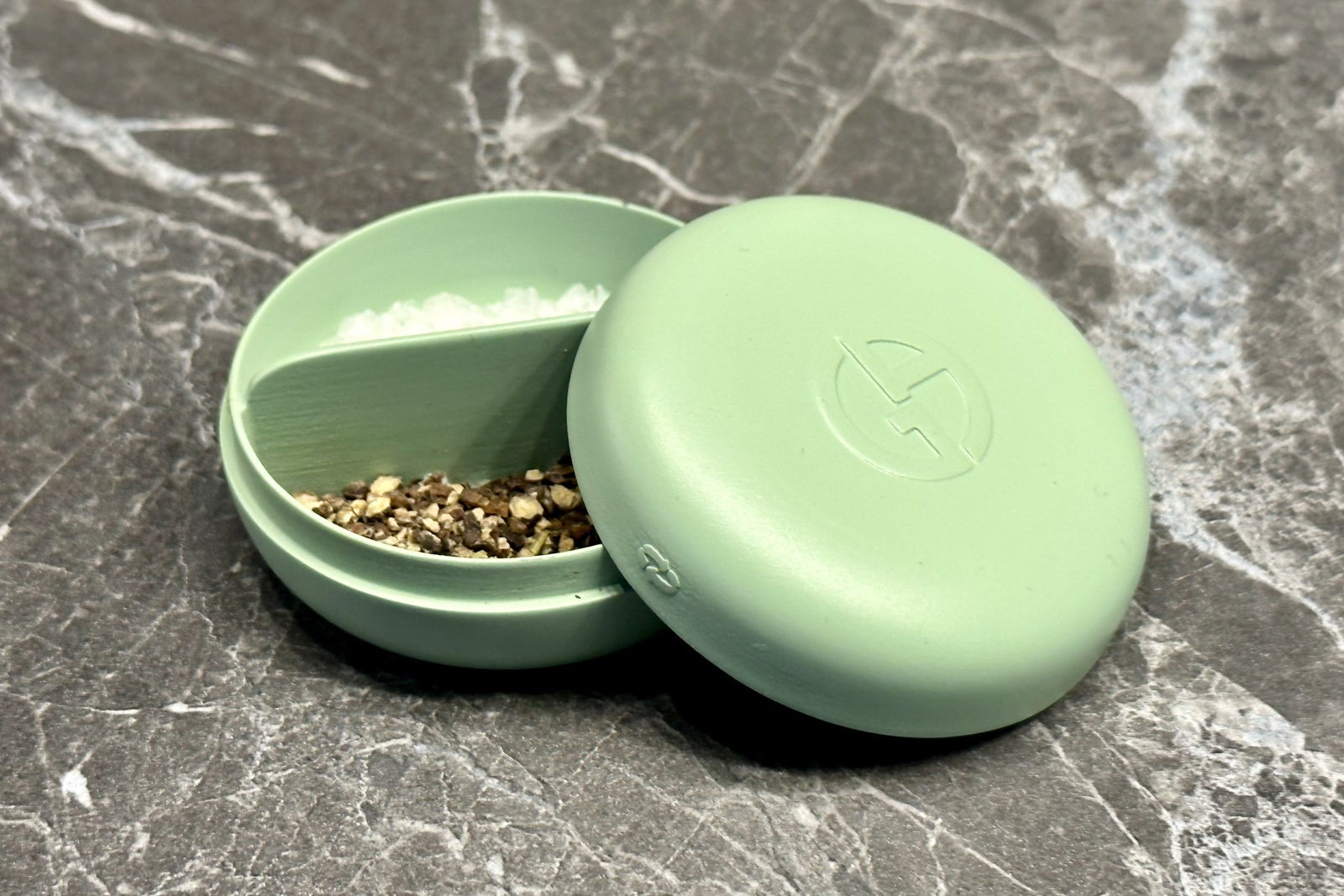 My favorite addition is the new salt and pepper holder. The coin-shaped design looks great in green, and the embossed Giorgio Armani logo adds a luxurious touch. (Note that these items aren't souvenirs — Etihad will reuse all the dishes and bedding after each flight.)