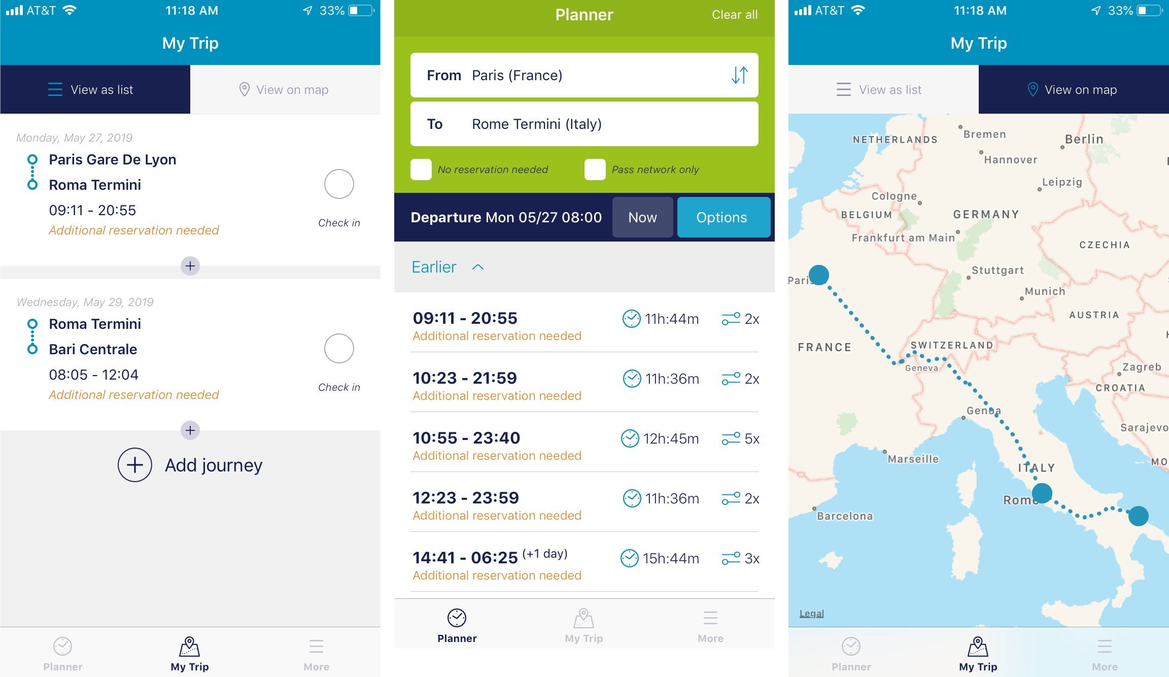 Plus, the app now tells you if an additional reservation is needed. For trains in France, Italy, Germany, Sweden and Switzerland, the app makes it easy to book a seat in advance and receive a confirmation by email.
