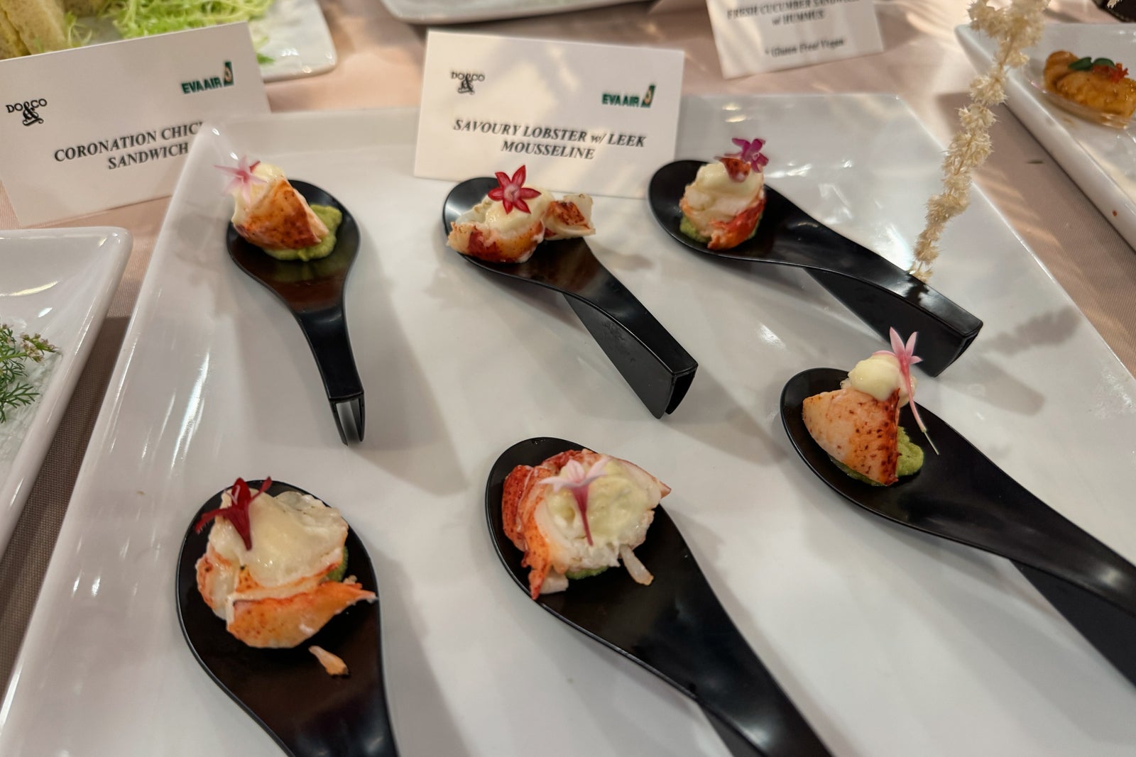 EVA Air, known for its high-end inflight meal service, offered passengers a taste of its culinary team's skills with a mouthwatering array of hors d'oeuvres.