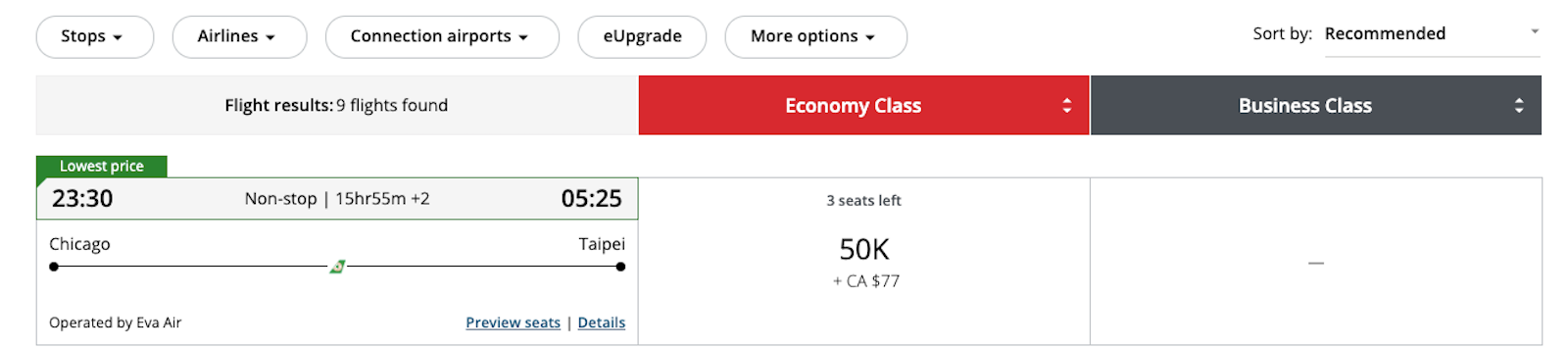With just a quick search, I found economy-class redemptions on the EVA Hello Kitty flight through Air Canada Aeroplan starting as low as 50,000 points, one-way.