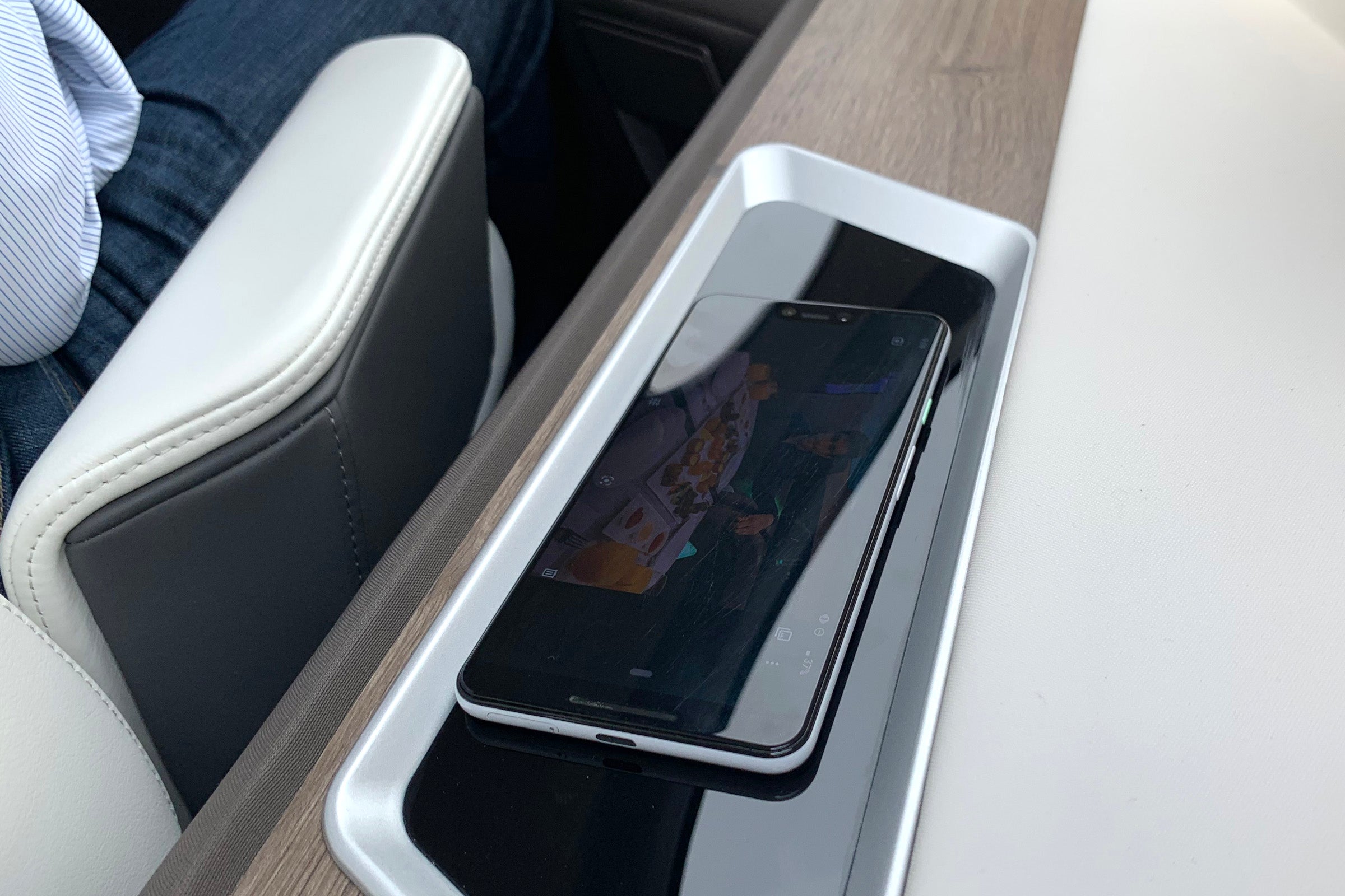 This prototype even has side-mounted wireless smartphone chargers, which I'm told work right now, though they weren't powered on during my tour.
