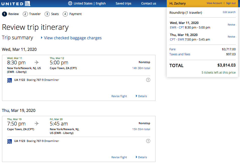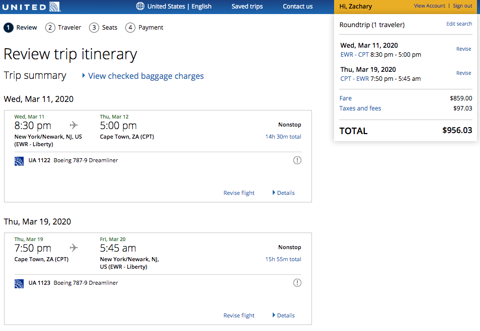 Paid Fares and Award Rates for United's New Cape Town Nonstop