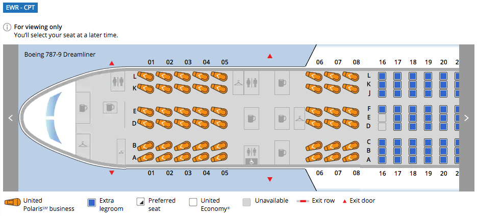 As of now, United is showing the old 2-2-2 business-class configuration, but with retrofitted aircraft expected to enter service later this year, there's a small chance that the new CPT nonstop will launch with Polaris seats, instead.
