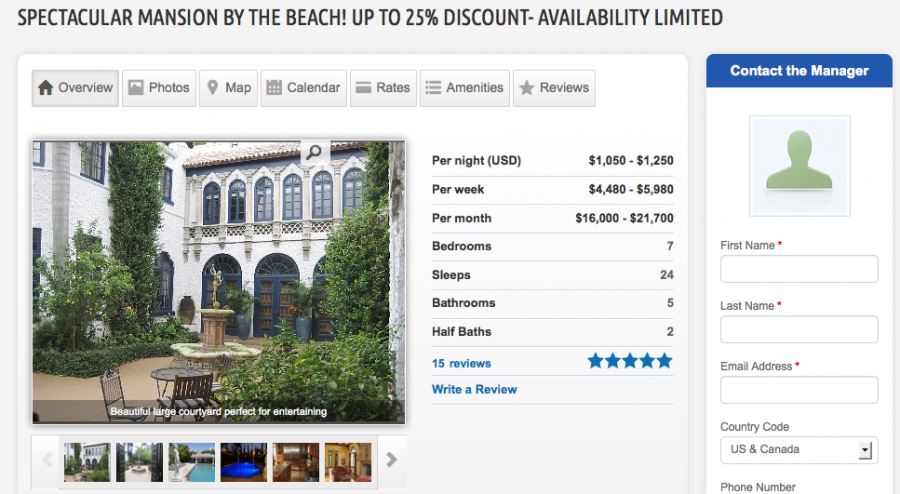 The prices for vacation rentals currently on HomeAway vary widely depending on the size and location, but for example, this 7-bedroom mansion in Hollywood, California, sleeps 24 people and rents out for $4,480 a week off-season (now through December 14, 2013). If one person puts it on their Sapphire Preferred card then that would mean they would earn 9,587.20 points from the trip. With nice hotels in Hollywood easily going for $400-$500 just for one standard room, you are potentially getting a lot more space and amenities for your money while earning Ultimate Rewards at the same time.