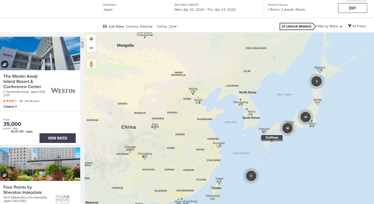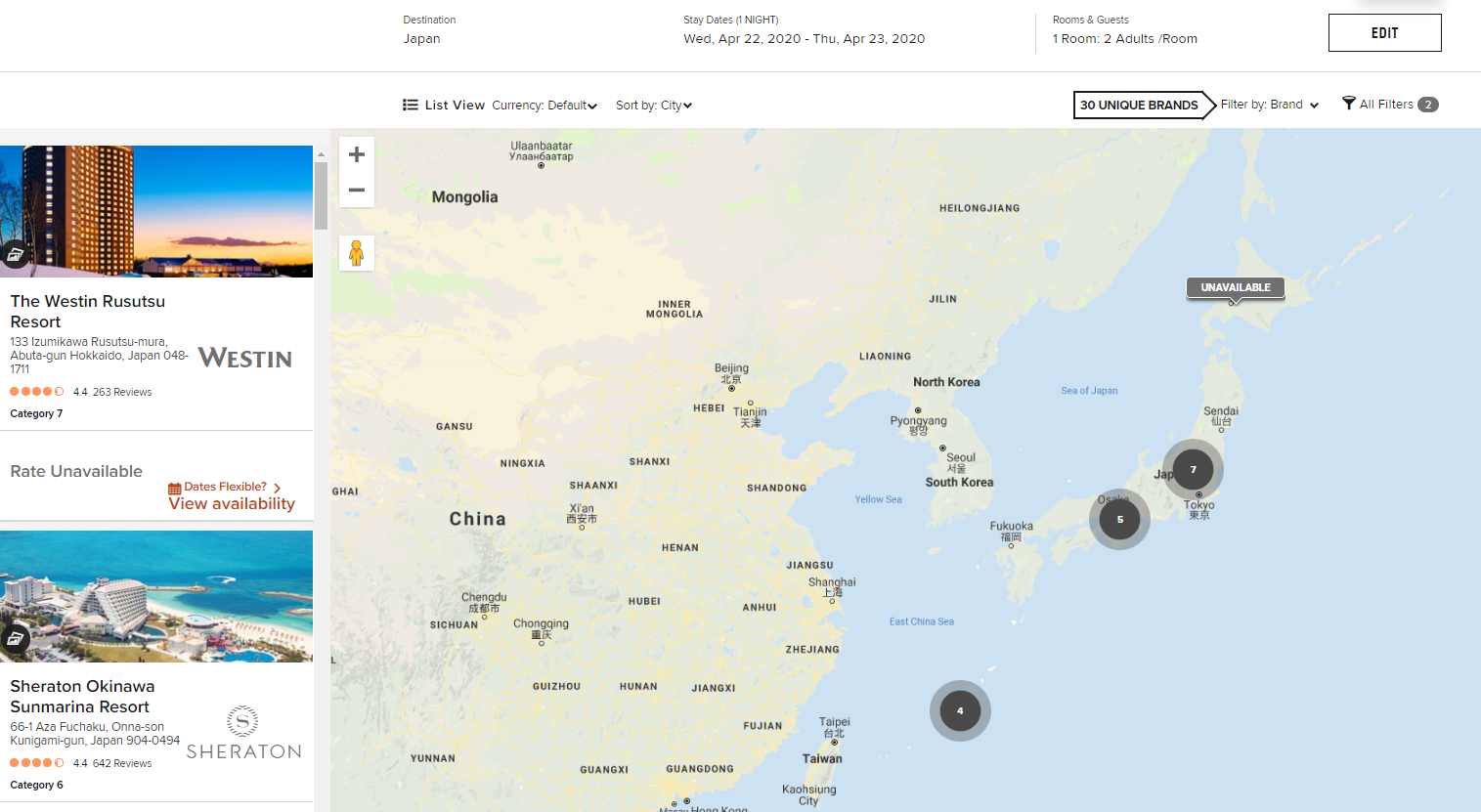 With all that in mind, I used Marriott's search feature to find all the Marriott properties in Japan.
