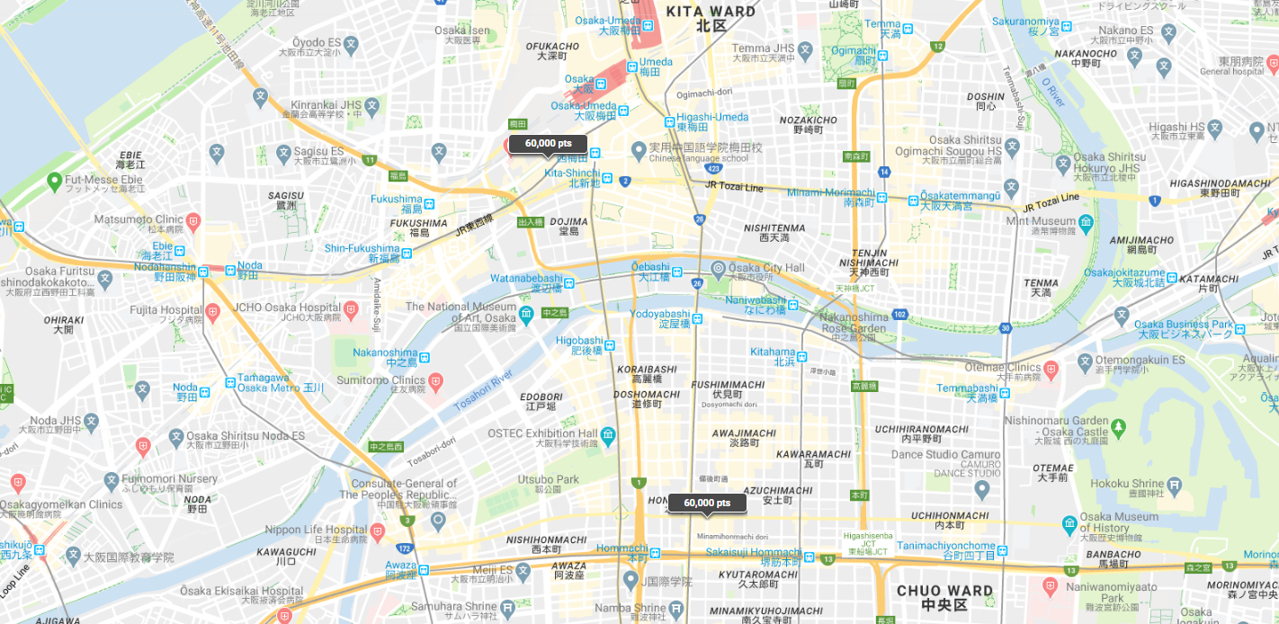 - One night in Osaka on each side of our luxury hotel nights at the Comfort Hotel Osaka Shinsaibashi for 8,000 Choice points per night