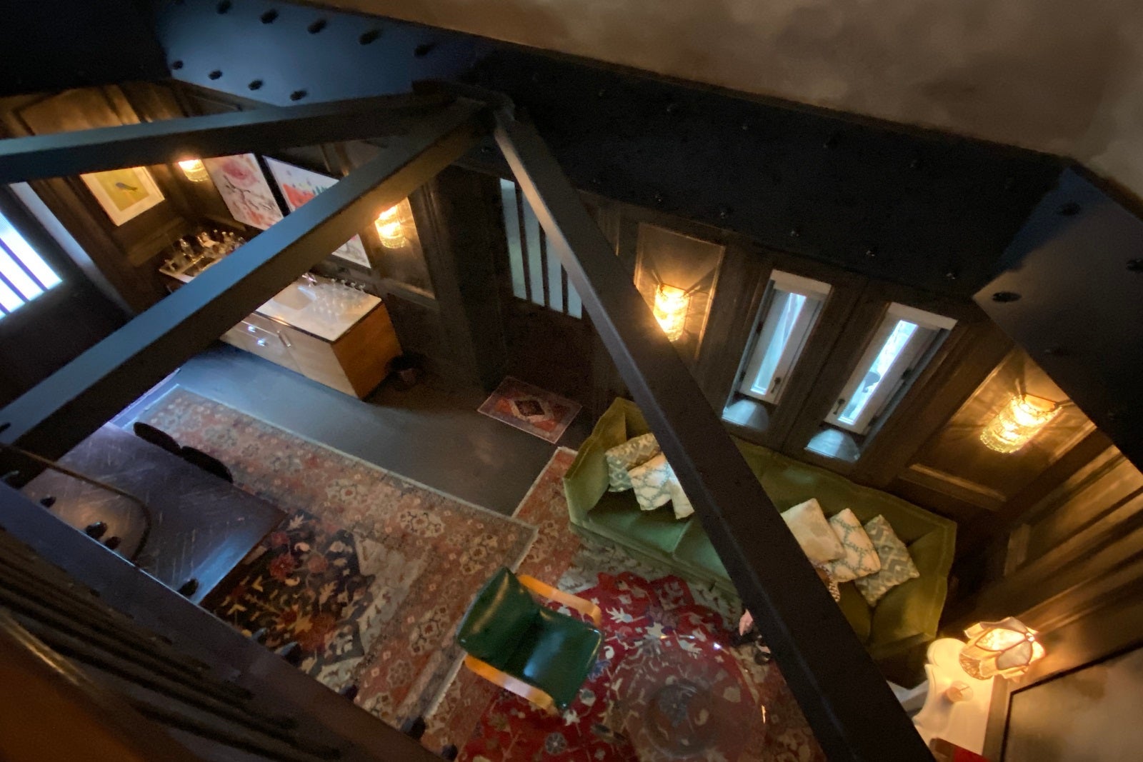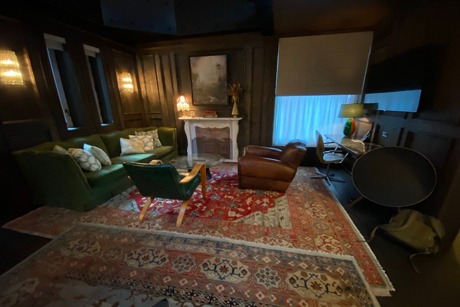 Once inside, you're met with a serious "Sleep No More" ambiance — dark colors that ooze early 20th-century decadence. There's a slight intrigue about it all, from the mismatched rugs and furniture to the bright white bath-and-a-half that can be found on the first floor in stark contrast to the rest of the dimly lit space.