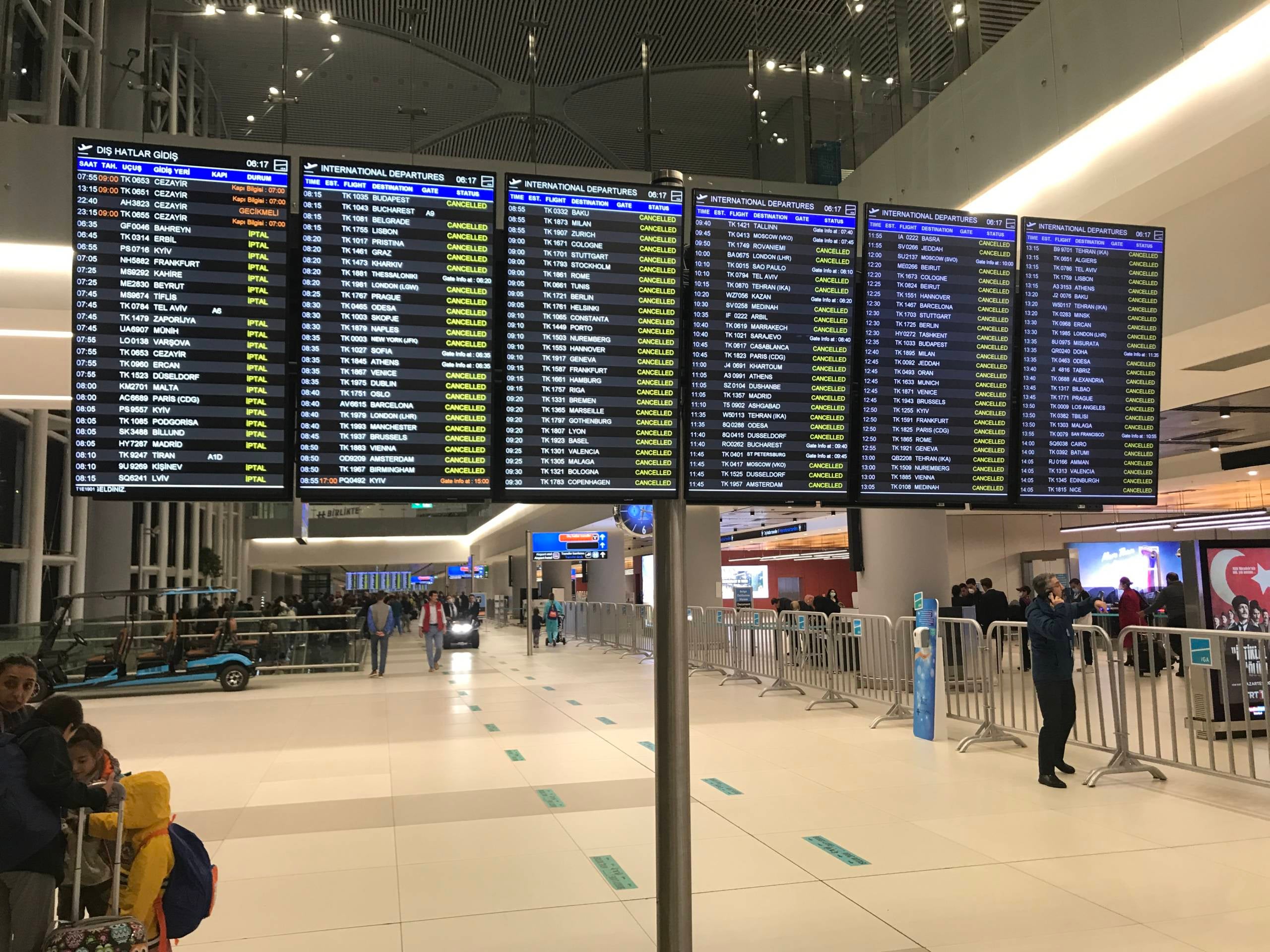 The Johannesburg airport wasn't crowded, but the mood was grim as the status boards showed many canceled flights and it was clear that those remaining were packed with those desperately trying to return home. Only about one in 10 were wearing masks but on board our flight, most were wiping down their seats and some even resorted to wrapping blankets over their nose and mouth. We breathed a sigh of relief when the aircraft took off, and again when we arrived safely in Istanbul's colossal new airport on a flight that was approximately 80% full.