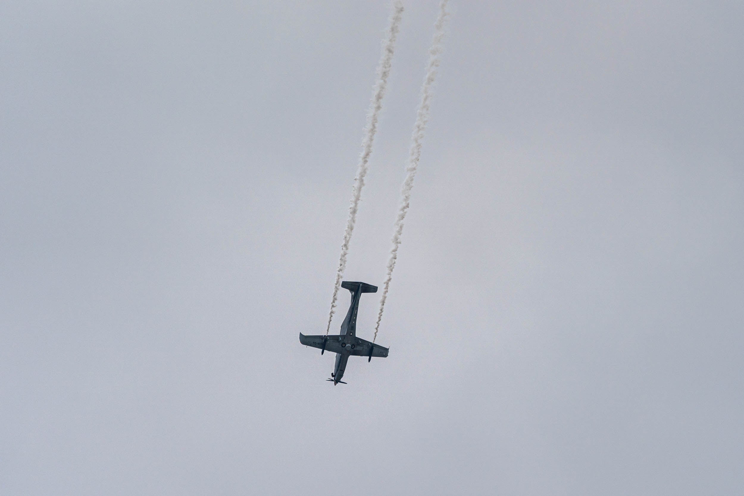 A Turkish TAI Hurkus twin-seat turboprop, meanwhile, performed stunts while releasing white skywriting smoke.