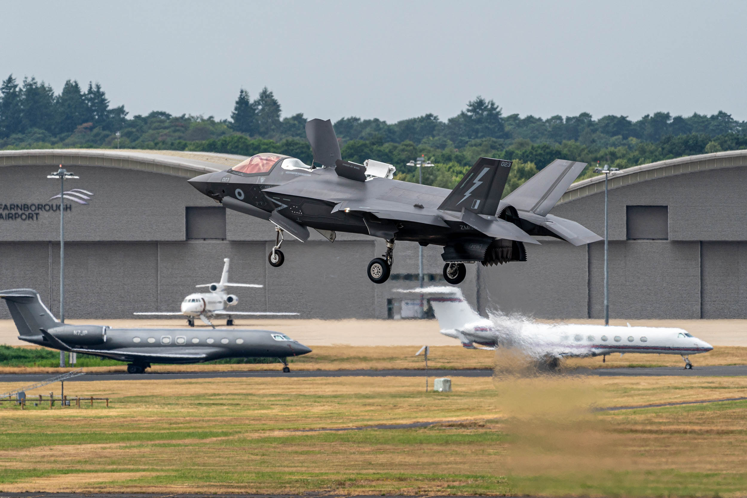 While the show at the Farnborough Airport (FAB) about 30 miles southwest of London is primarily from Monday to Wednesday, many exhibitors and potential customers remain on site through the week, closing deals or going over details and showing off new products. On Friday, the airshow opens to the public for prime views of the flying display.