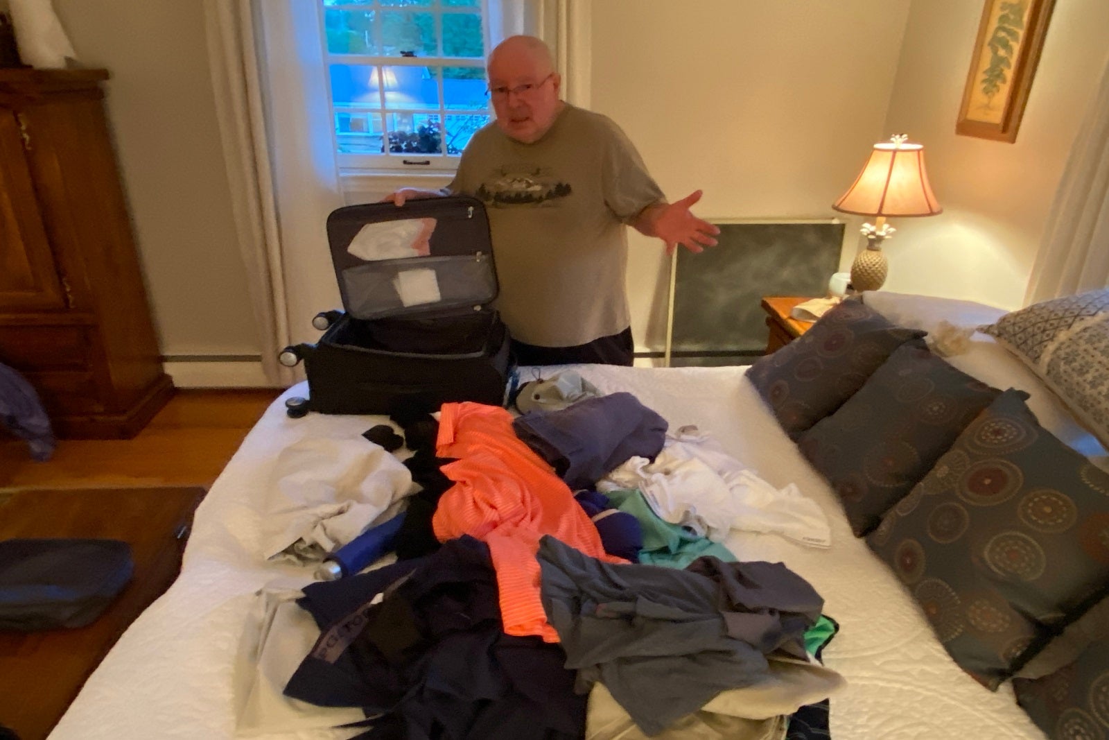 "I can't fit all that in there," my dad said, incredulous, as he looked from his pile of clothes to the brand-new Samsonite carry-on my mom had purchased years prior (but which had yet to see any use).