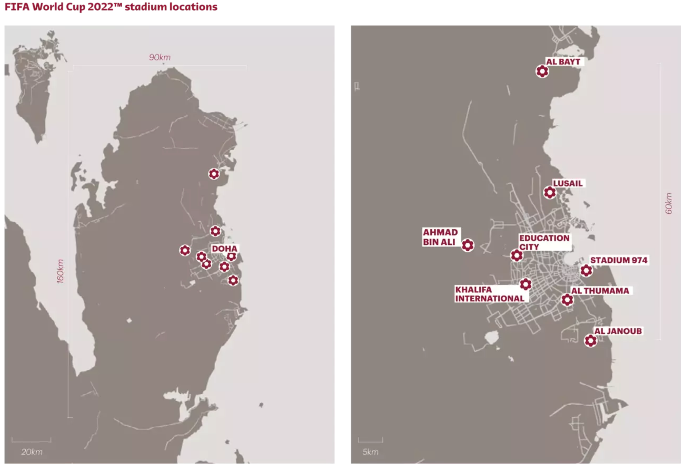 With up to four daily matches during the group stage, teams will play games across eight stadiums near the country's capital Doha, including the following venues: