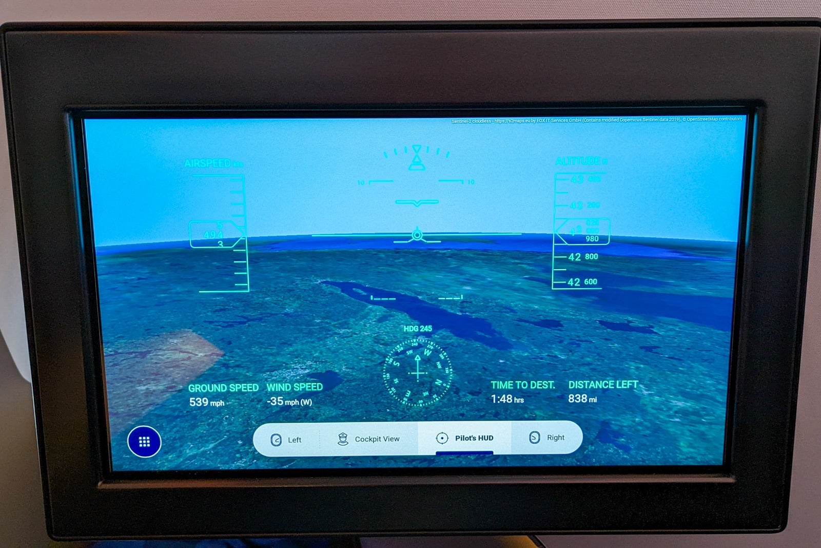 The moving map feature on the IFE screen is among the coolest I have seen in my travels. We're talking standard map views, landing cameras and cockpit views, as well as views out of the left and right windows.