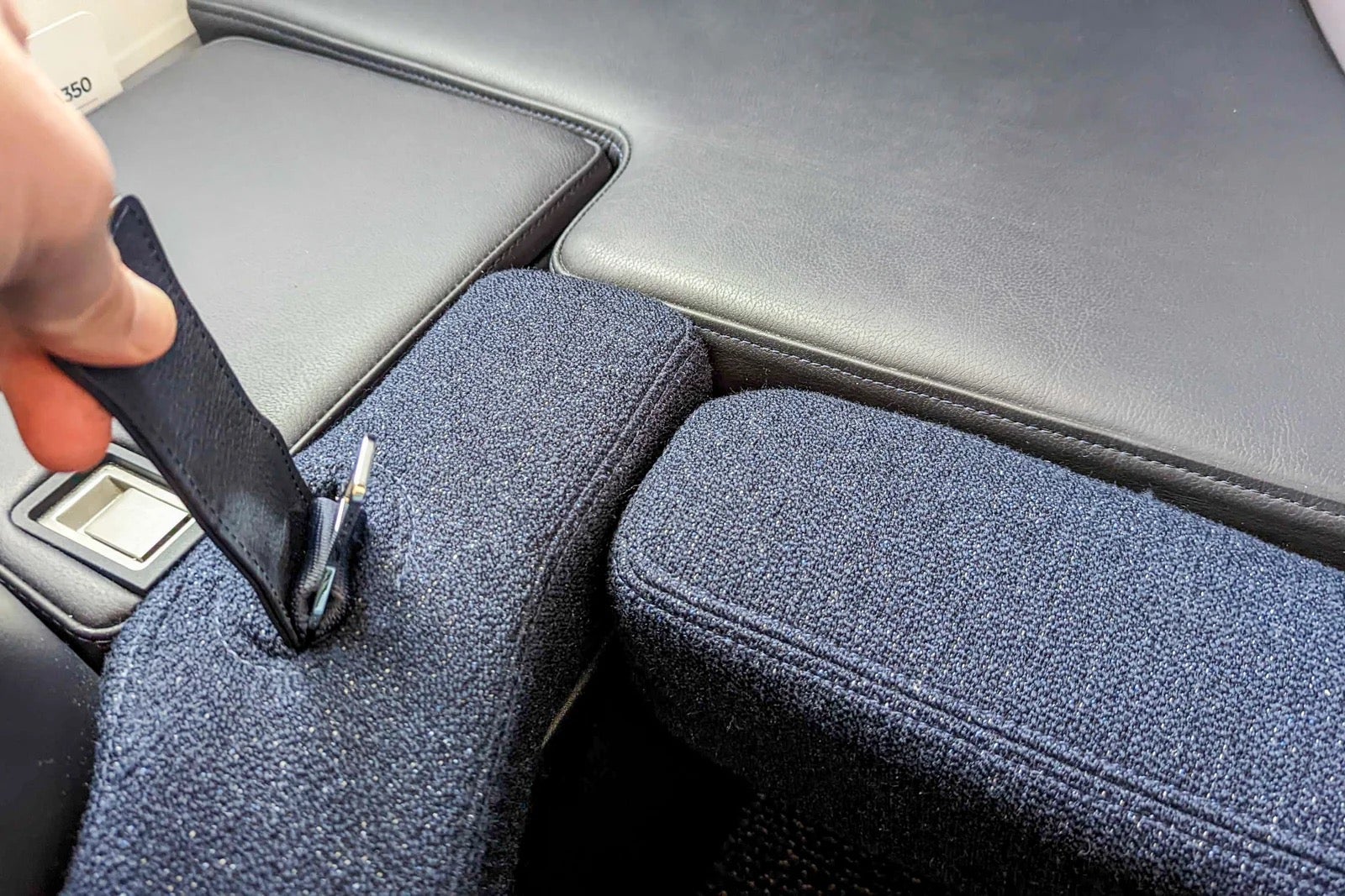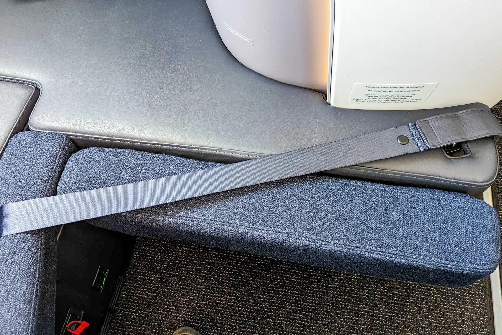 On the topic of seatbelts, there is a cleverly concealed extra belt at the top of the leg rest to buckle yourself in when lying flat.