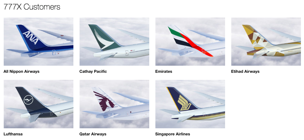 So far, a handful of airlines have signed on to operate the 777X, including the seven carriers below, plus British Airways, which just confirmed plans to order 18 Boeing 777-9s to replace its aging 747-400 fleet.