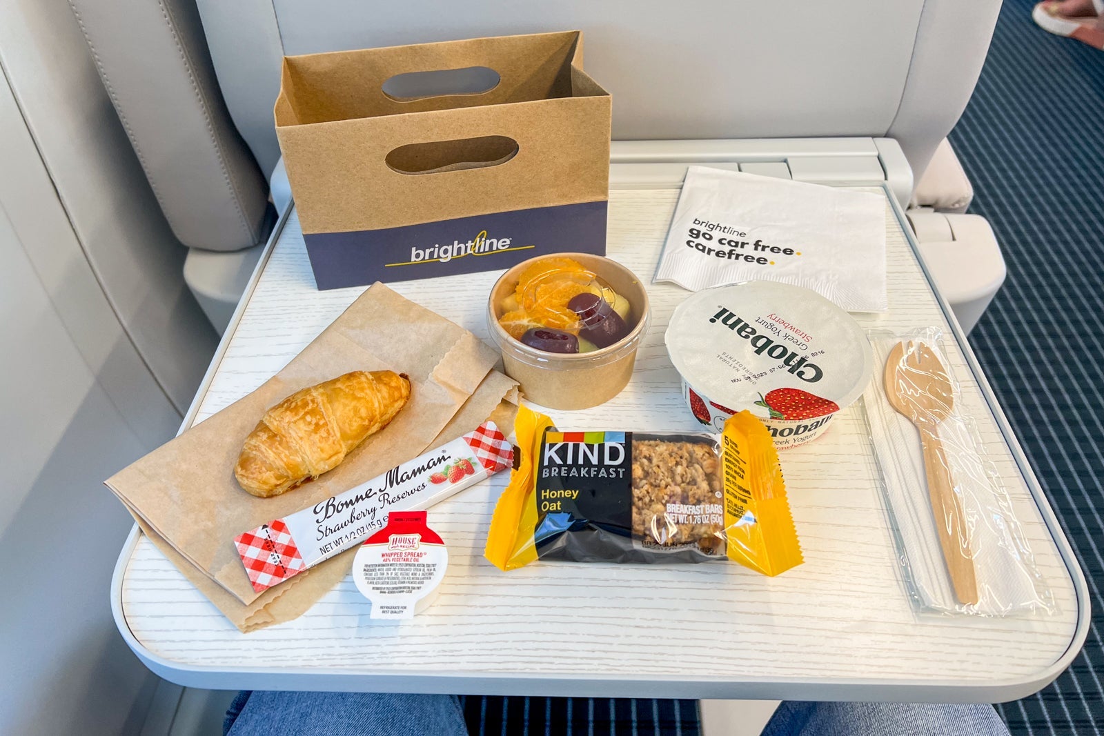 All passengers on this inaugural train were served a continental breakfast and offered a choice of nonalcoholic beverages, though passengers on regular service have a variety of food and beverage items for purchase (they're complimentary for those in the Premium coach).