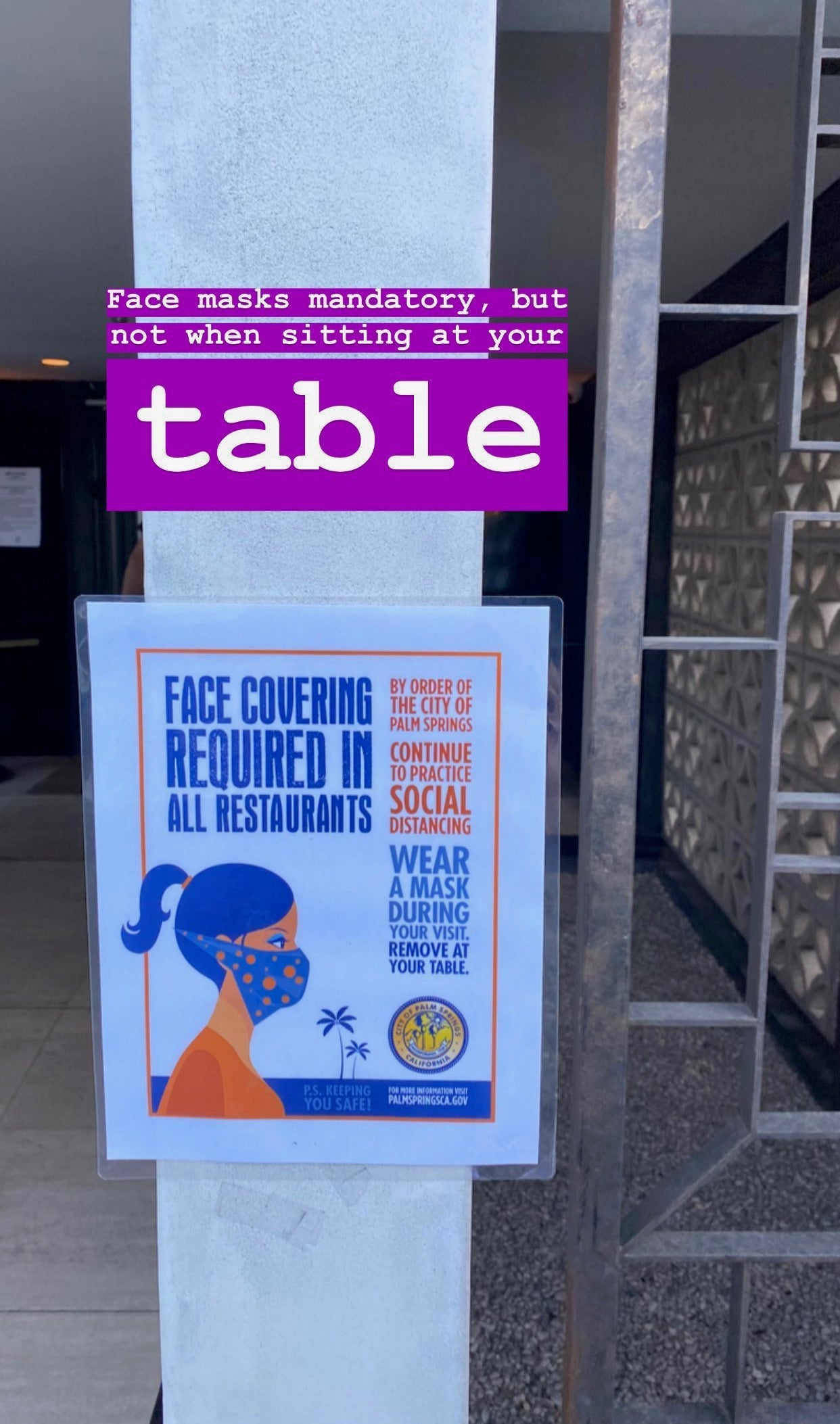 During the same trip, I ventured out to a restaurant to see what that would be like. My friends and I went to Mr. Lyons steakhouse, a Palm Springs institution. This is the first time I've experienced a temperature check at a restaurant post-lockdown.