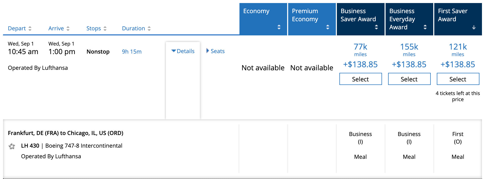 As TPG's Ryan Patterson explains in his post detailing Lufthansa's newfound generosity, there are a handful of booking options that don't involve redeeming 121,000 United miles for a one-way trip: